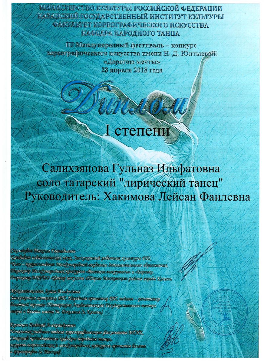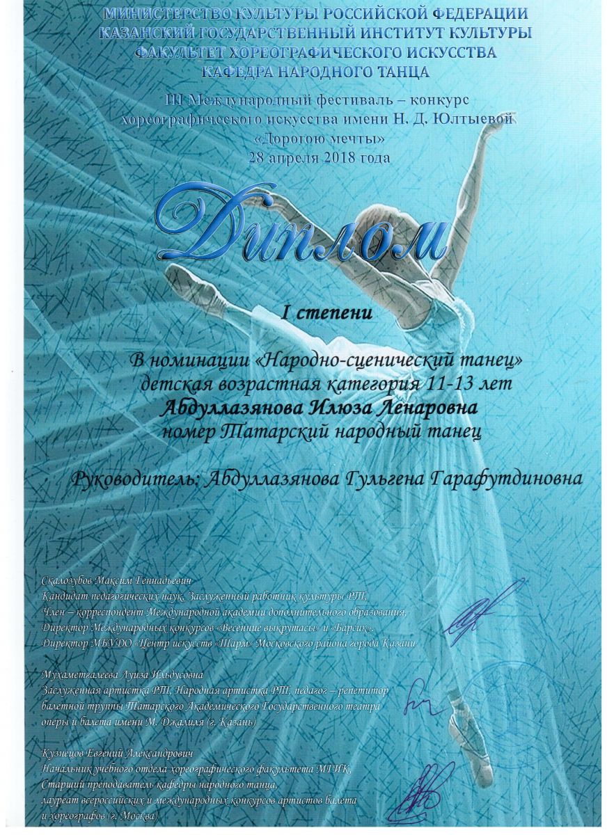 Диплом 1 степени во III международном конкурсе им.Н.Д.Юлтыевой "Дорогою мечты"
