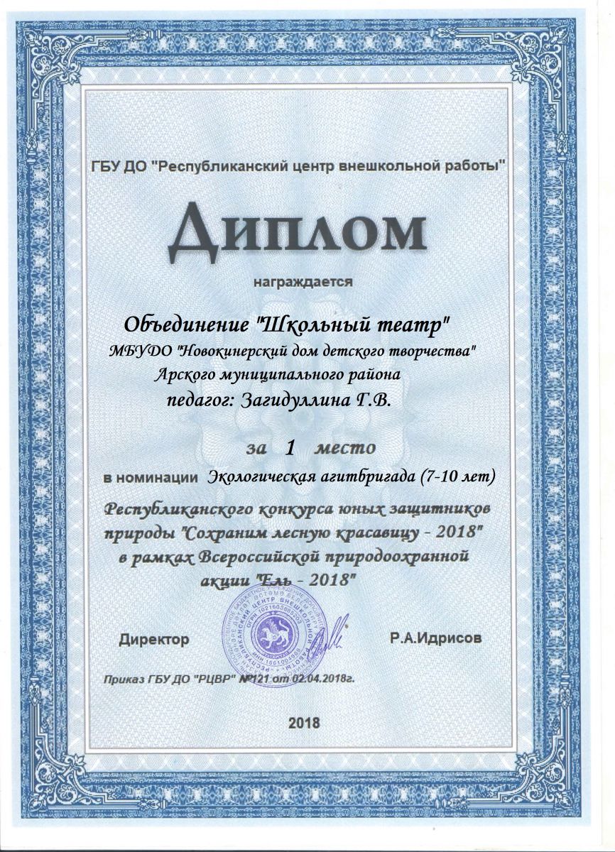 1 место республиканского конкурса юных защитников природы "Сохраним лесную красавицу-2018"