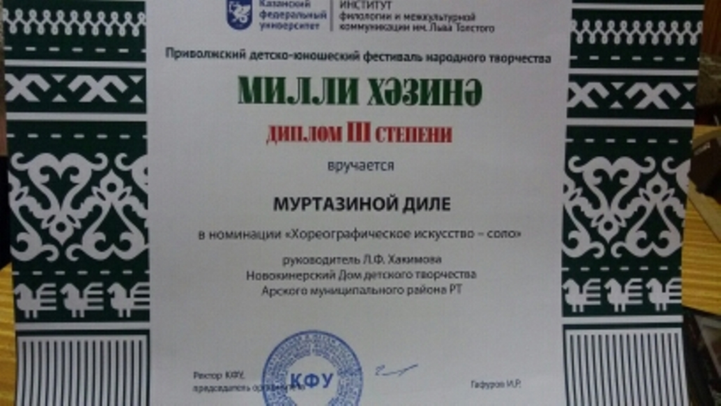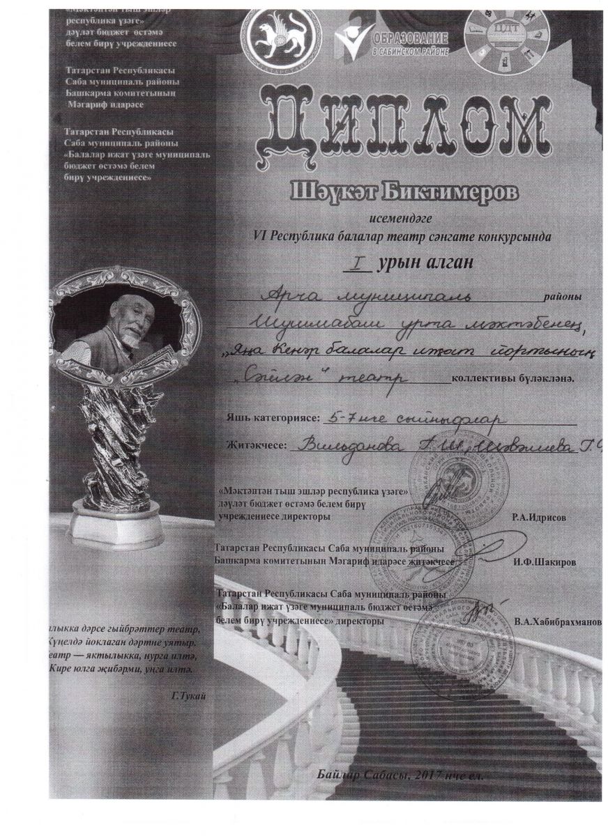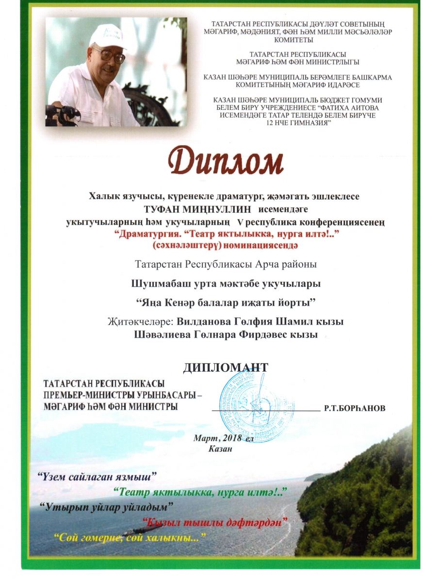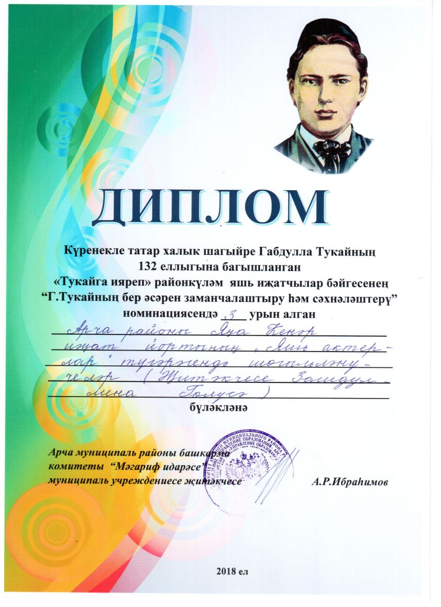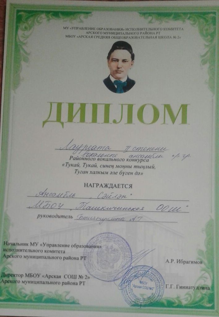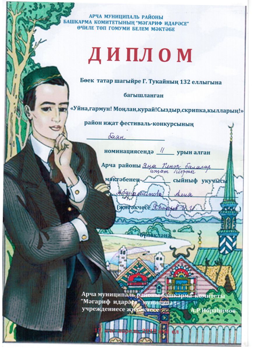 Дипломант в республиканском конкурсе им. Т.Миңнуллина