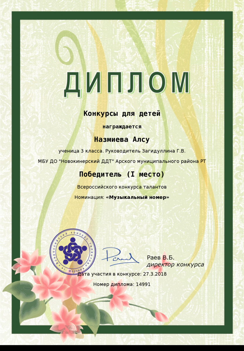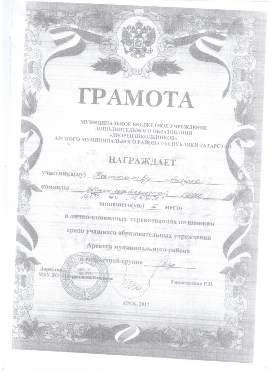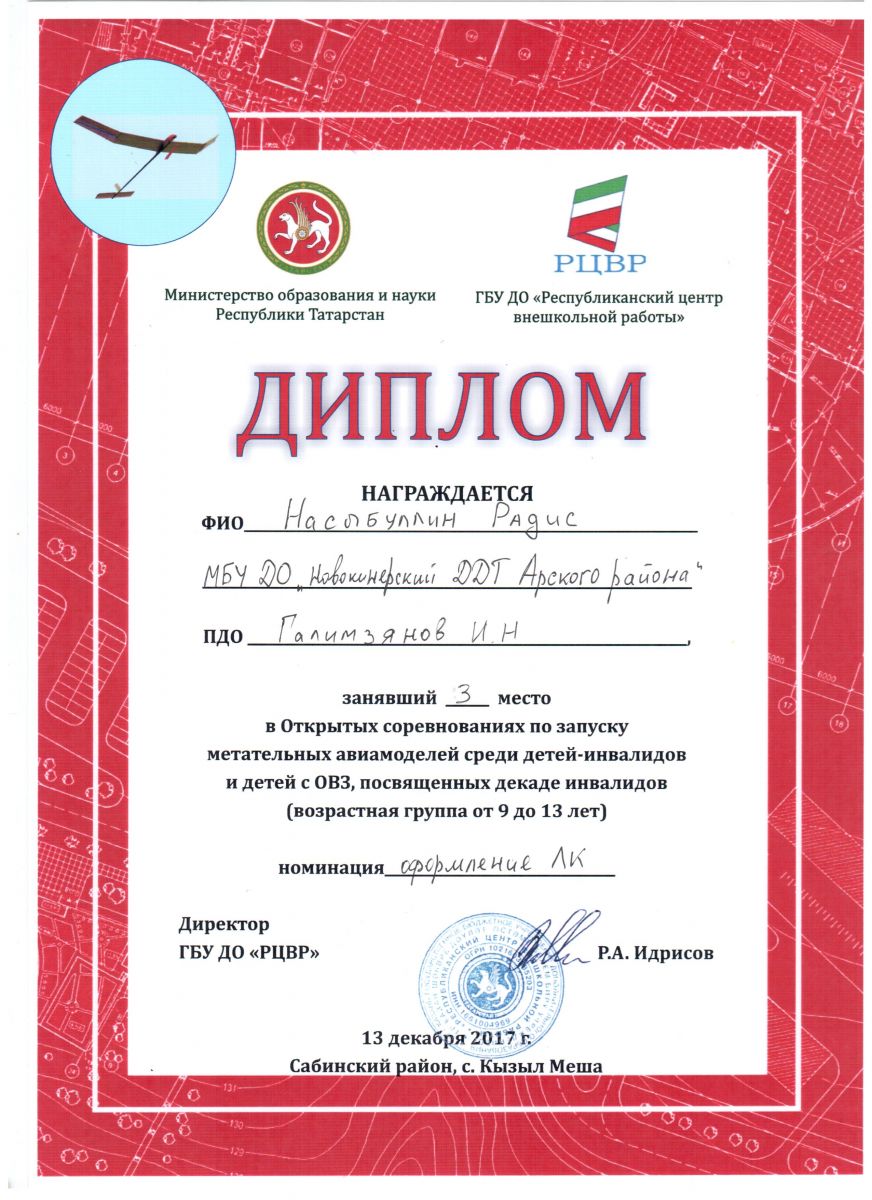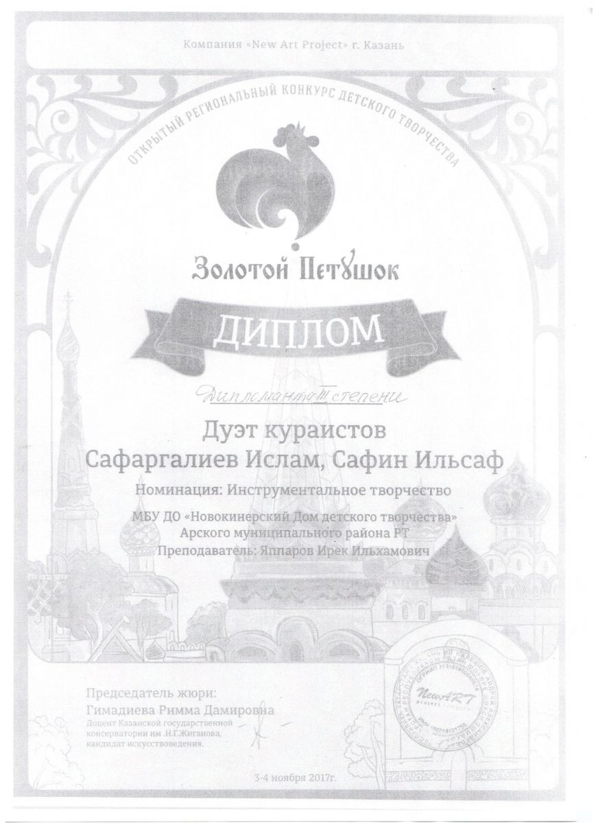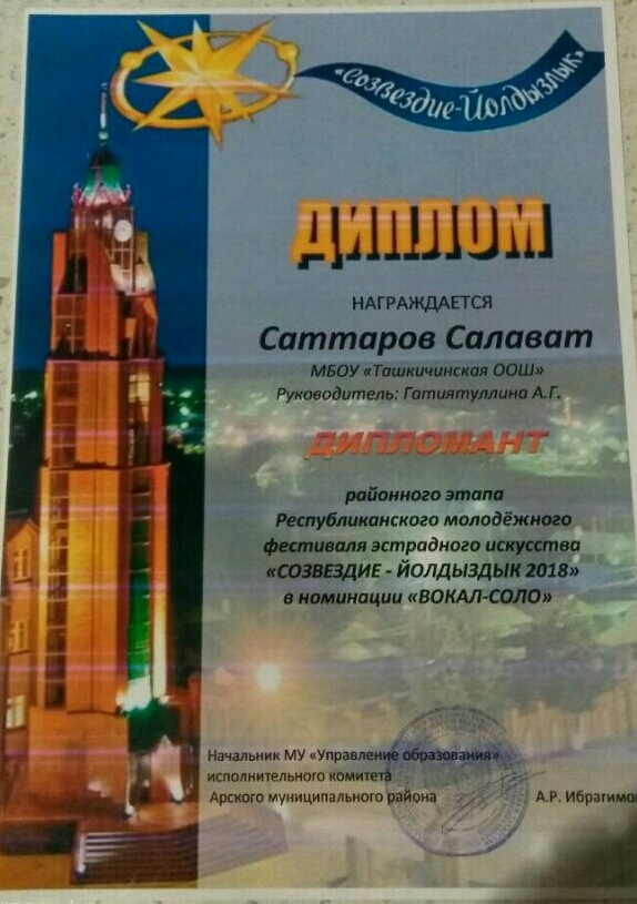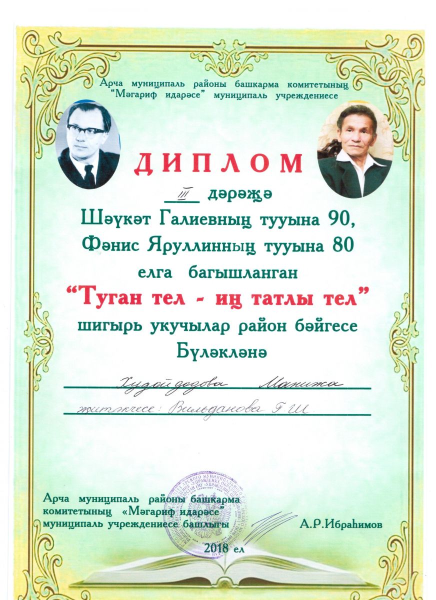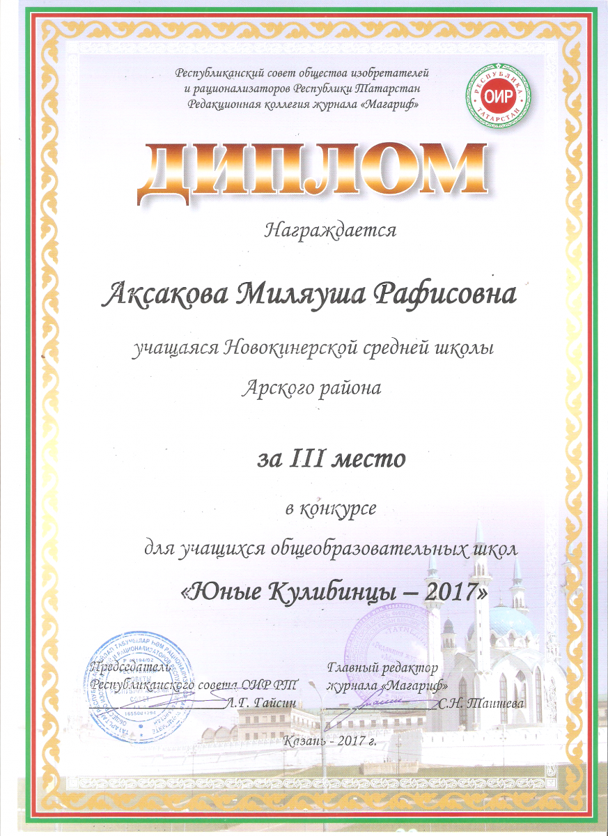 Дипломант в республиканском конкурсе им. Т.Миңнуллина