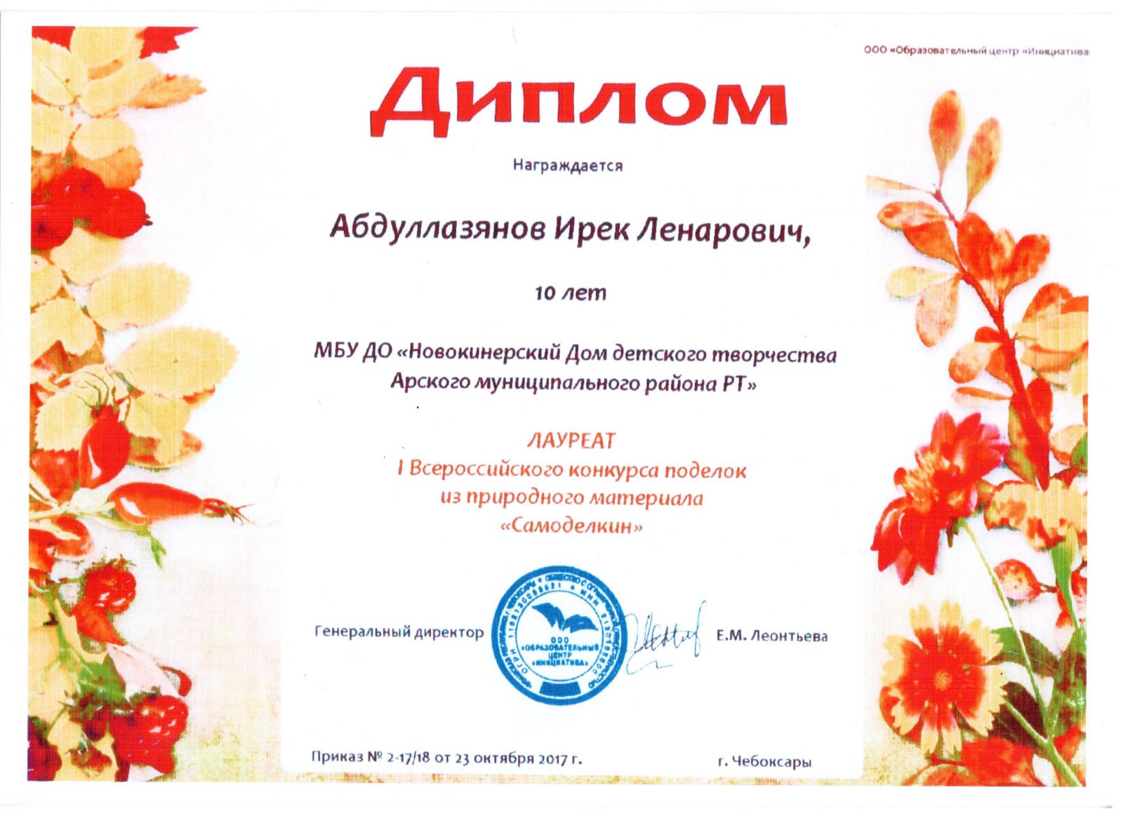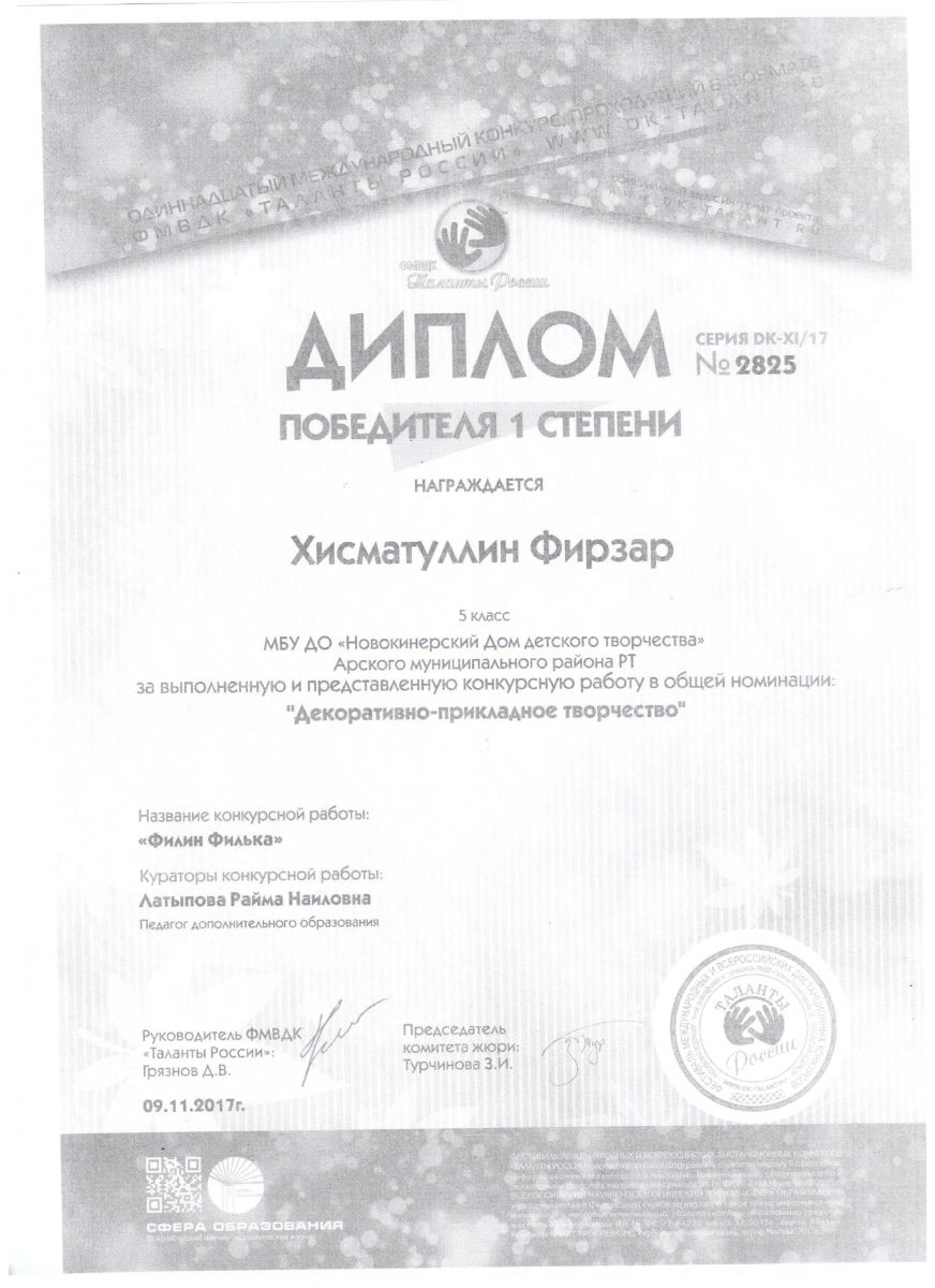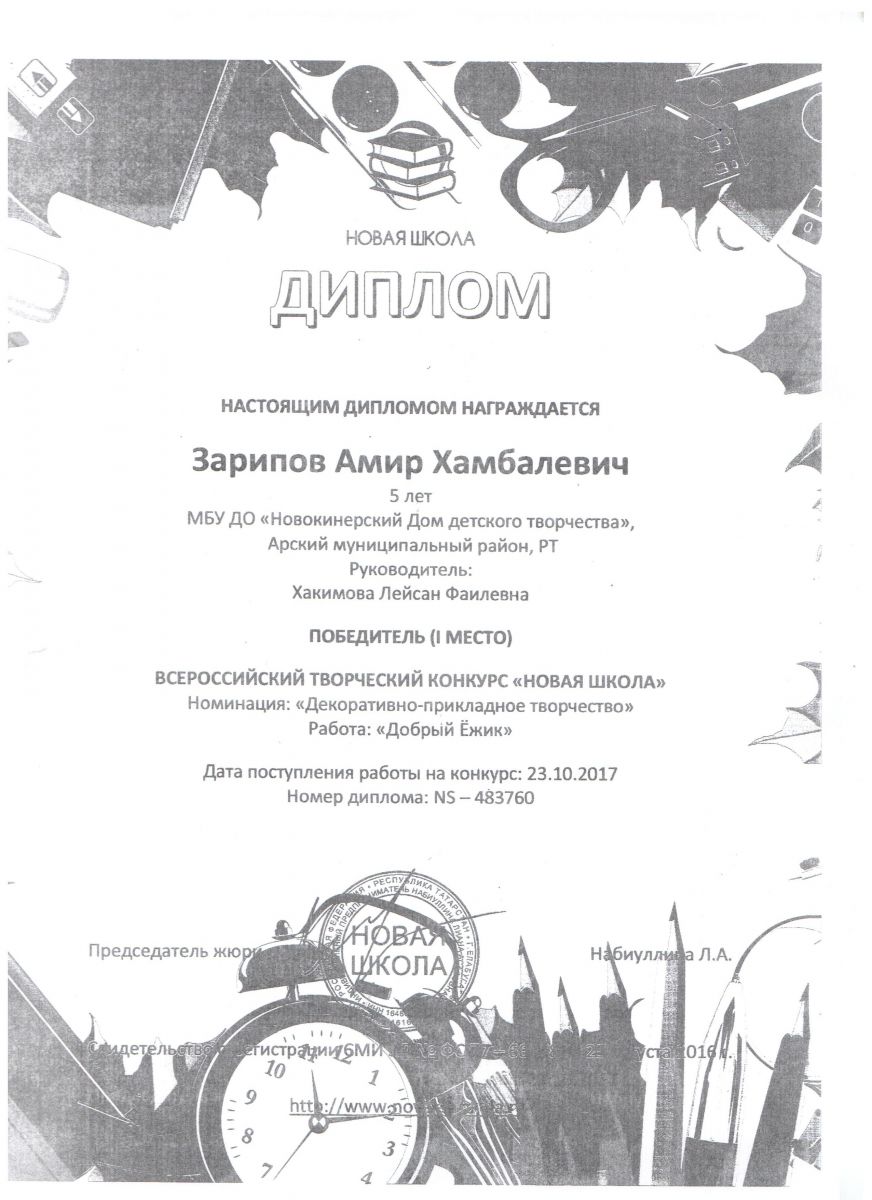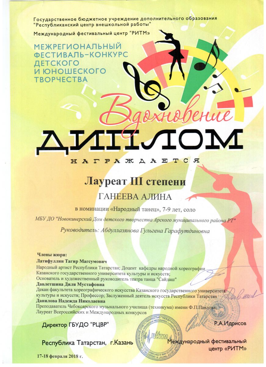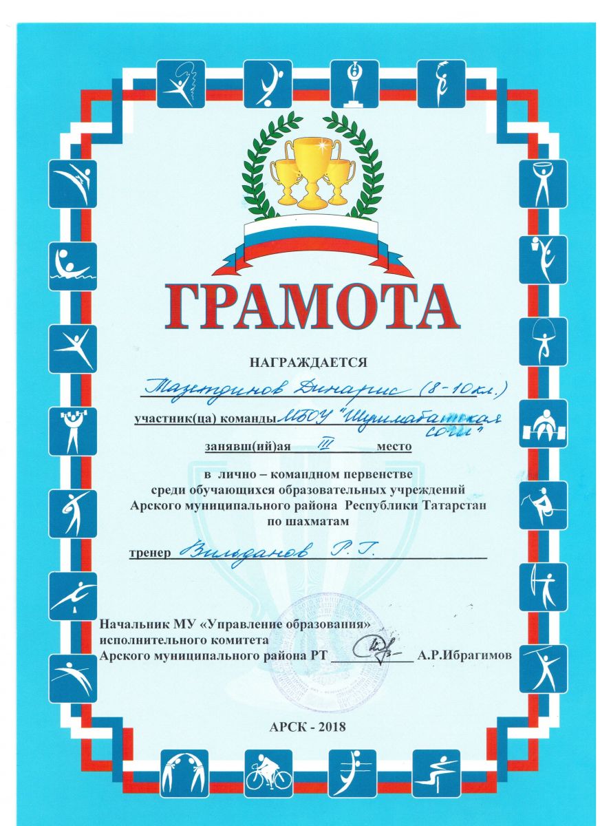 Дипломант в республиканском конкурсе им. Т.Миңнуллина
