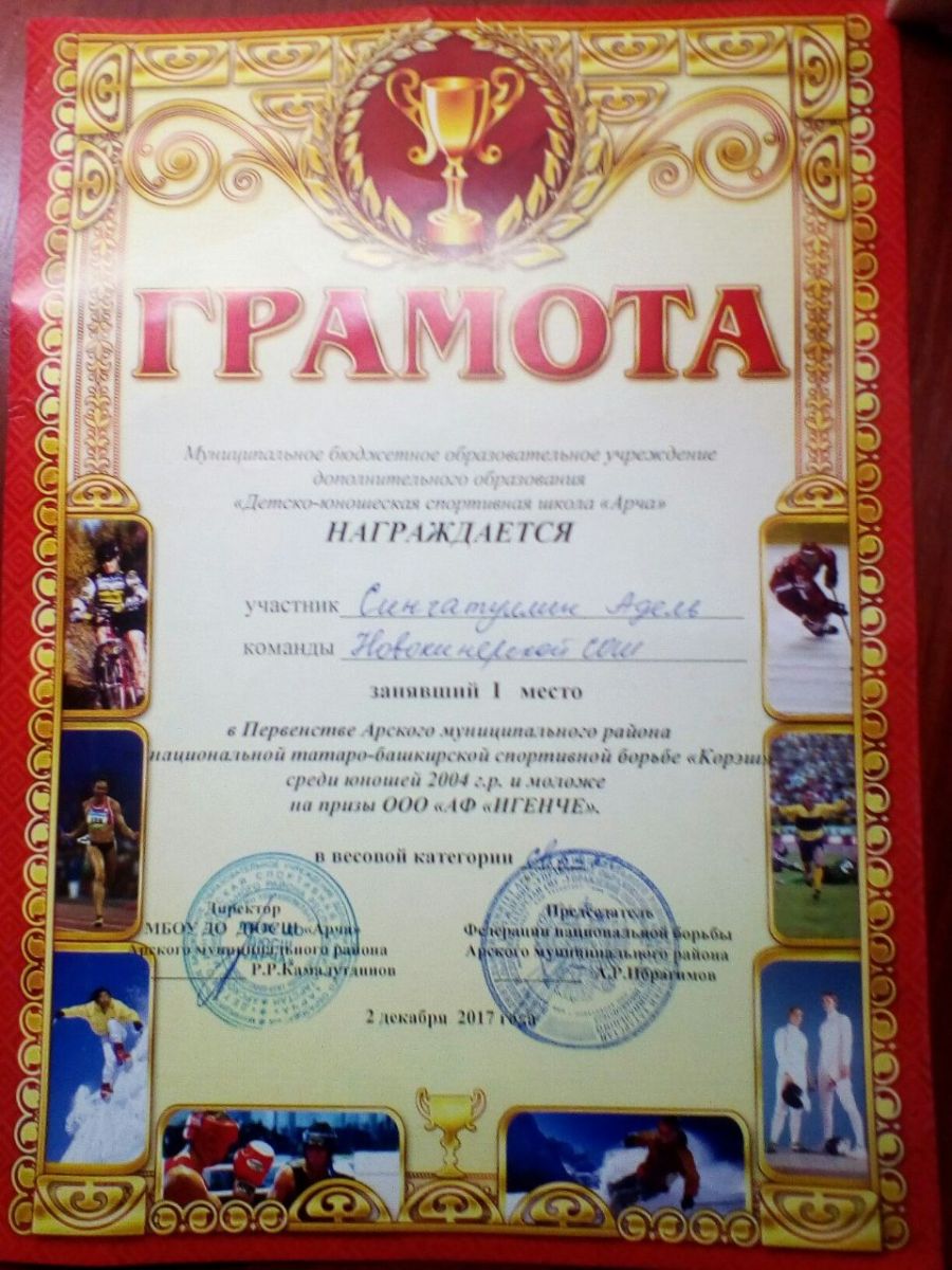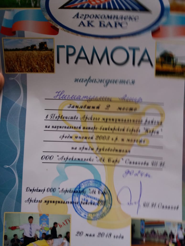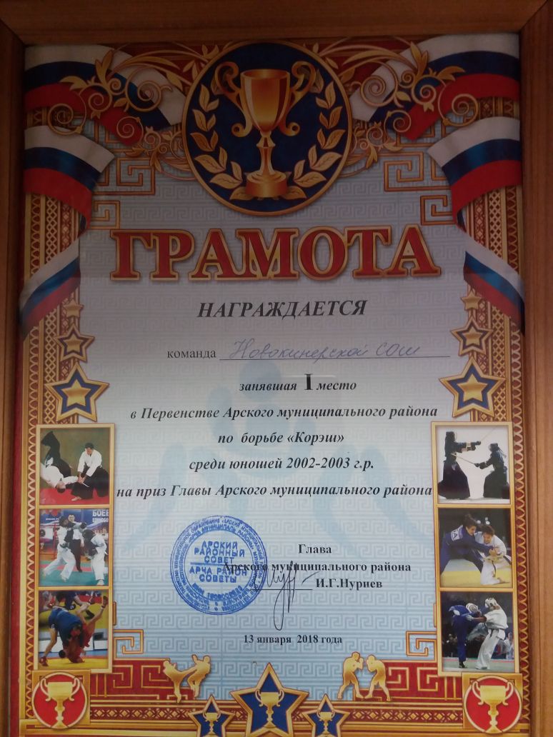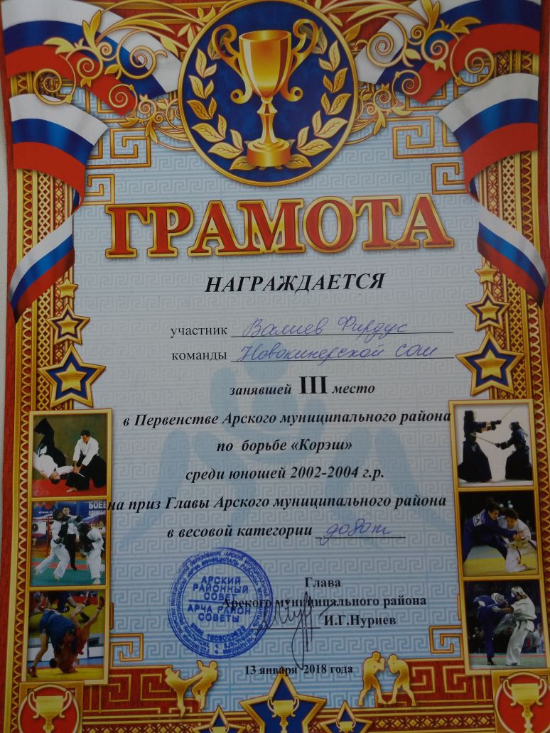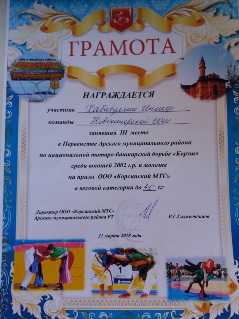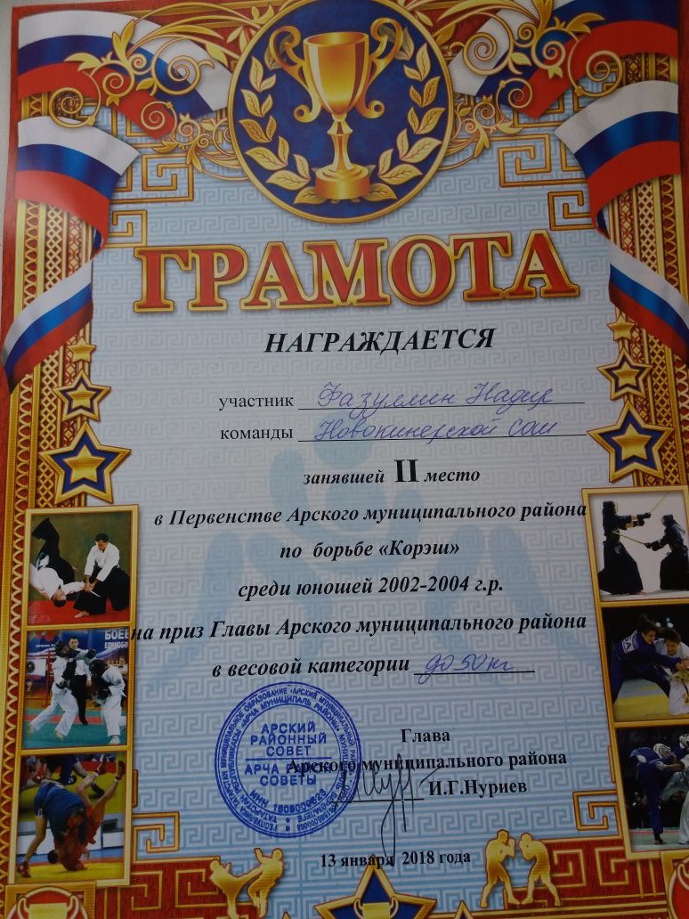 1 место в Первенстве Арского муниципального района по борьбе "Көрәш"