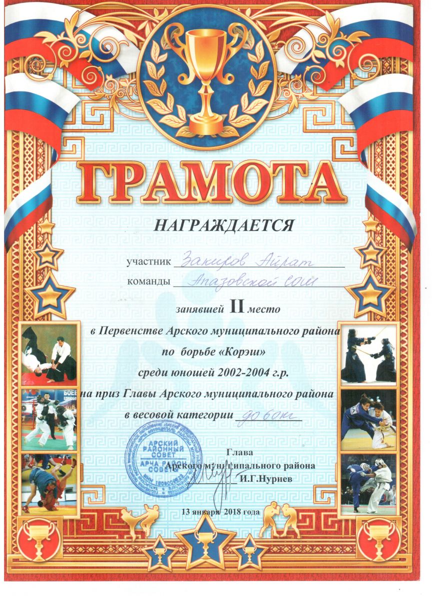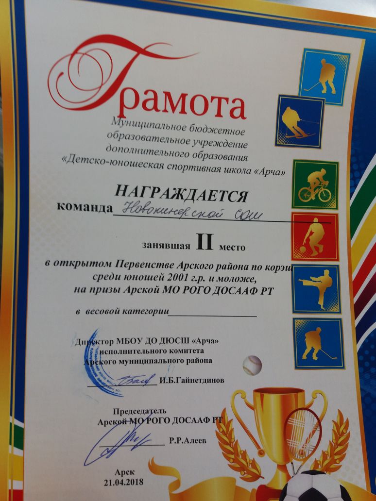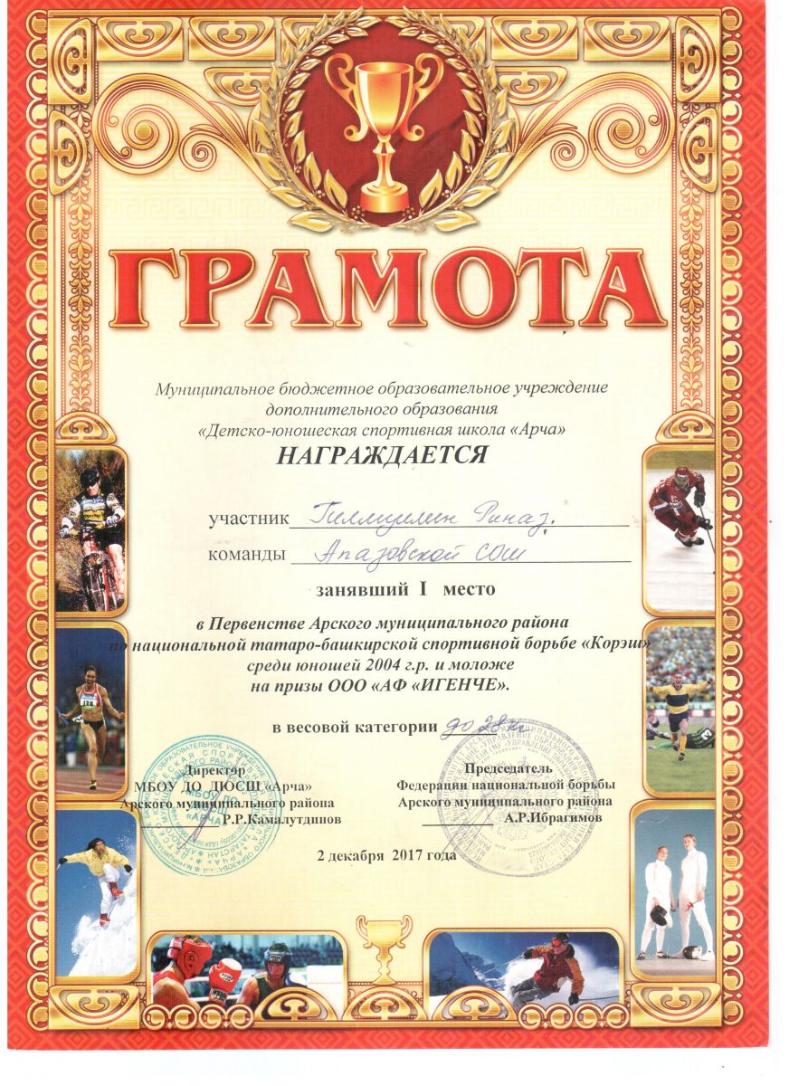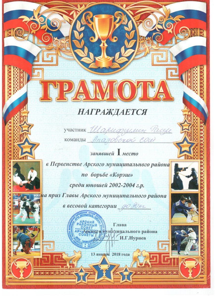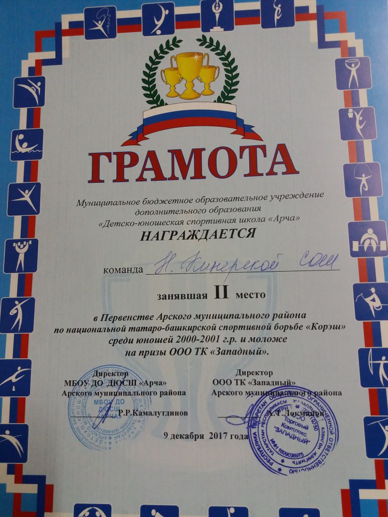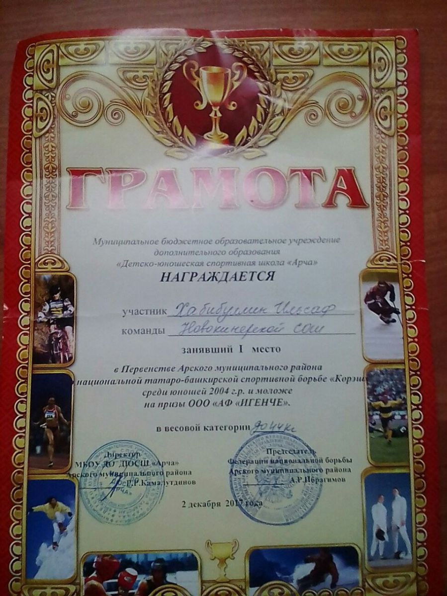 1 место в Первенстве Арского муниципального района по борьбе "Көрәш"