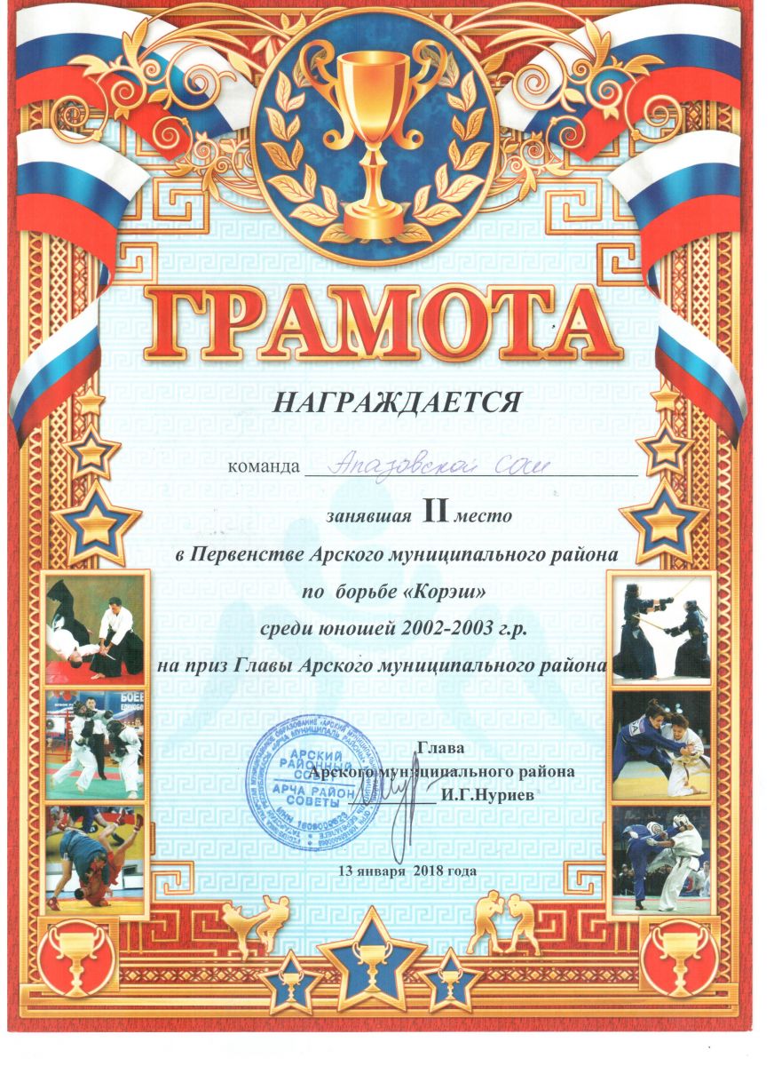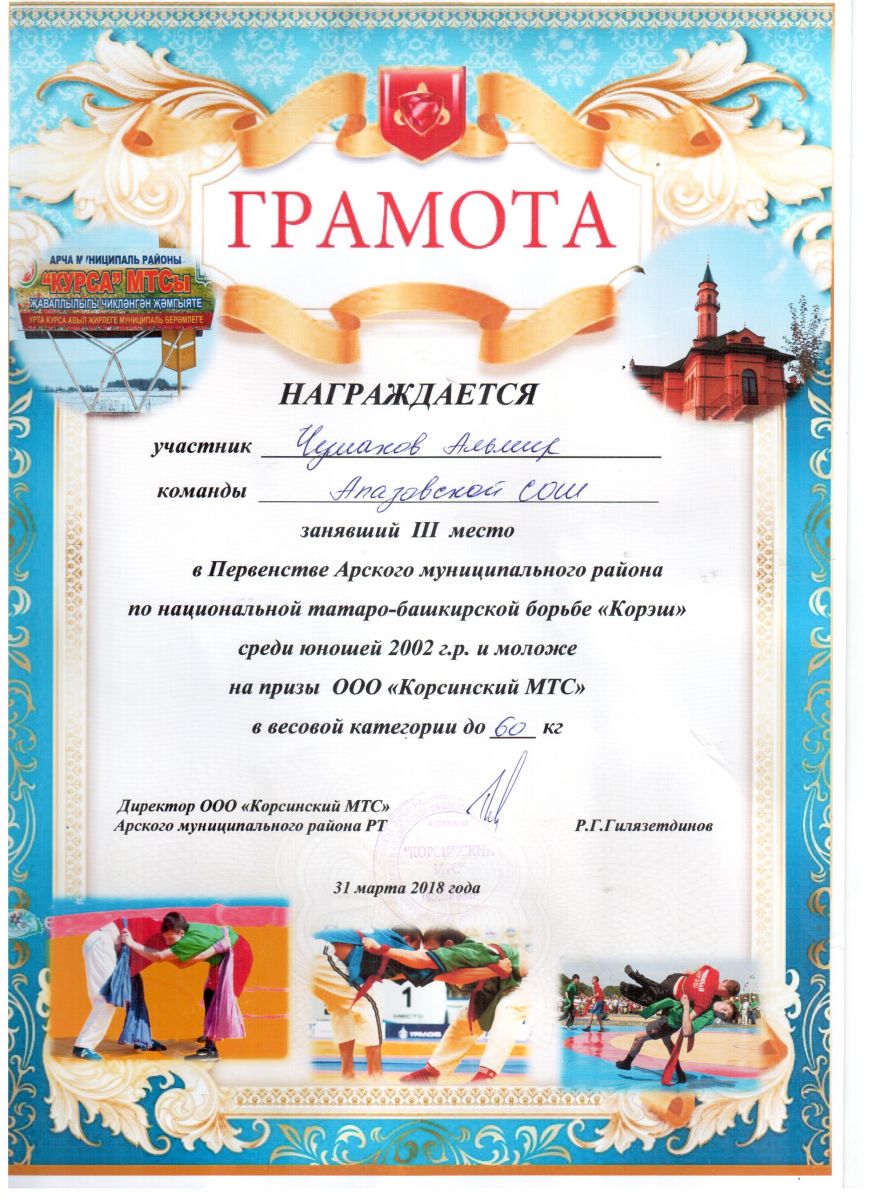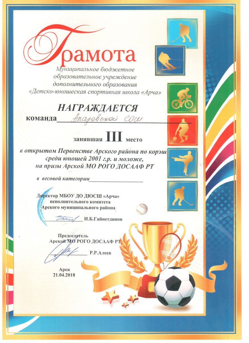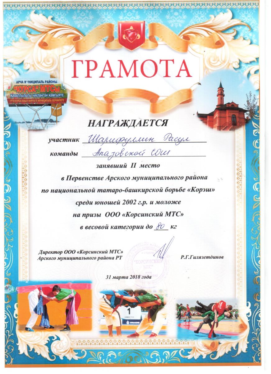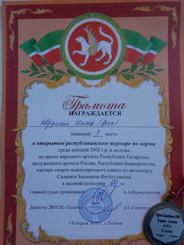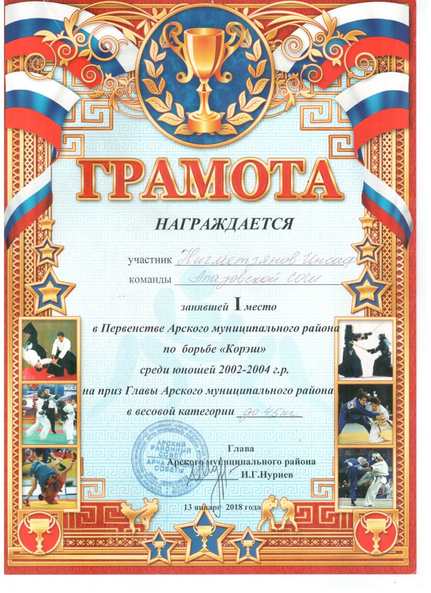 1 место в Первенстве Арского муниципального района по борьбе "Көрәш"