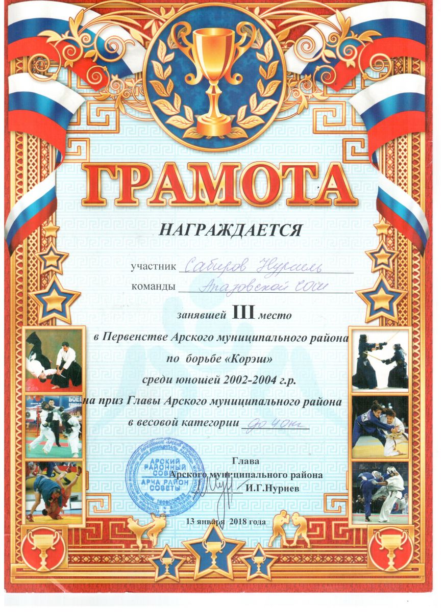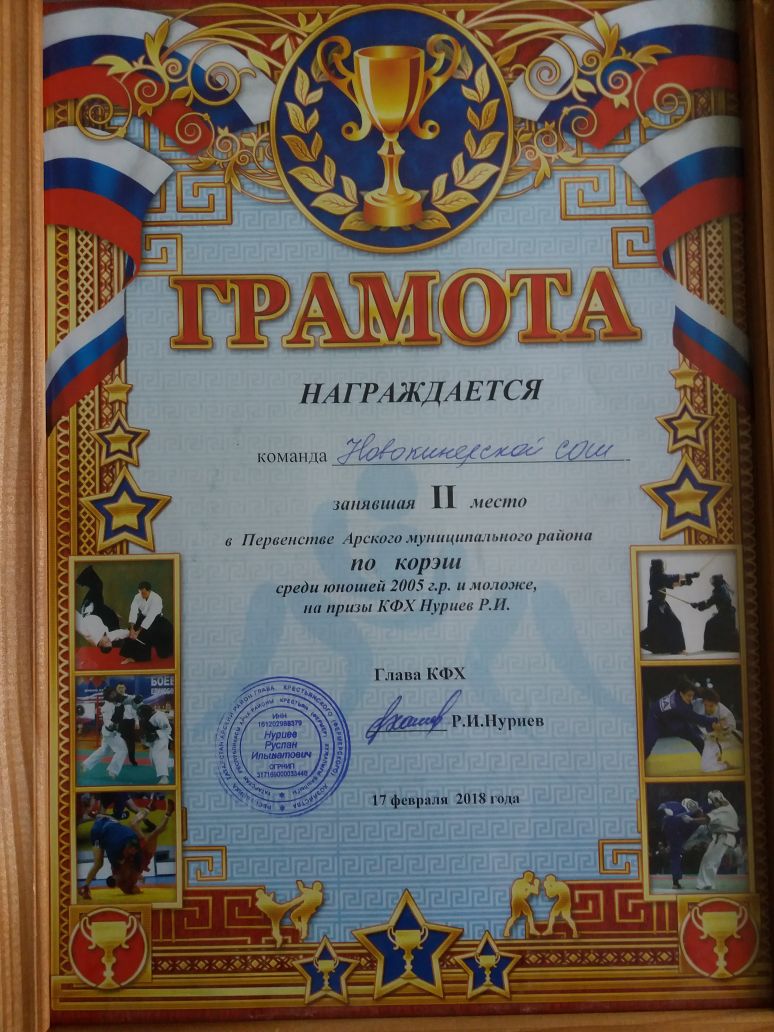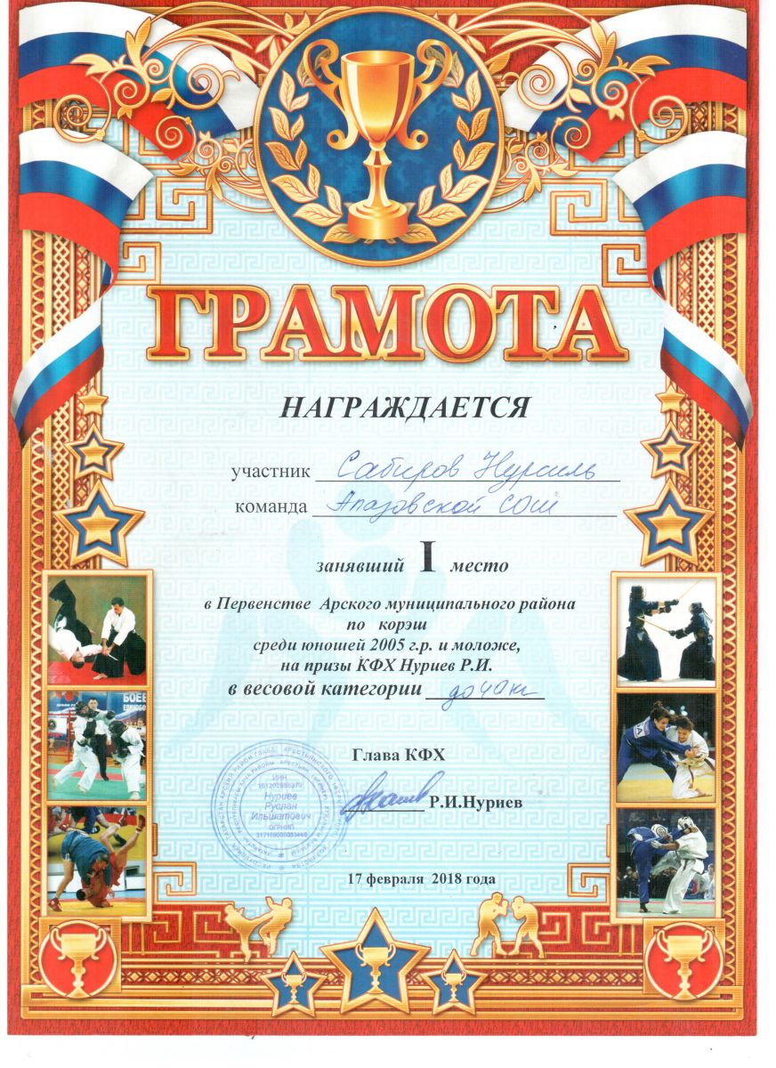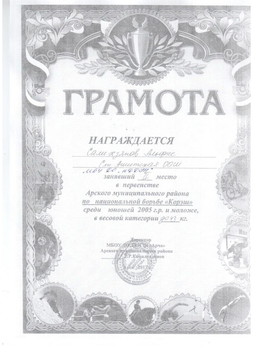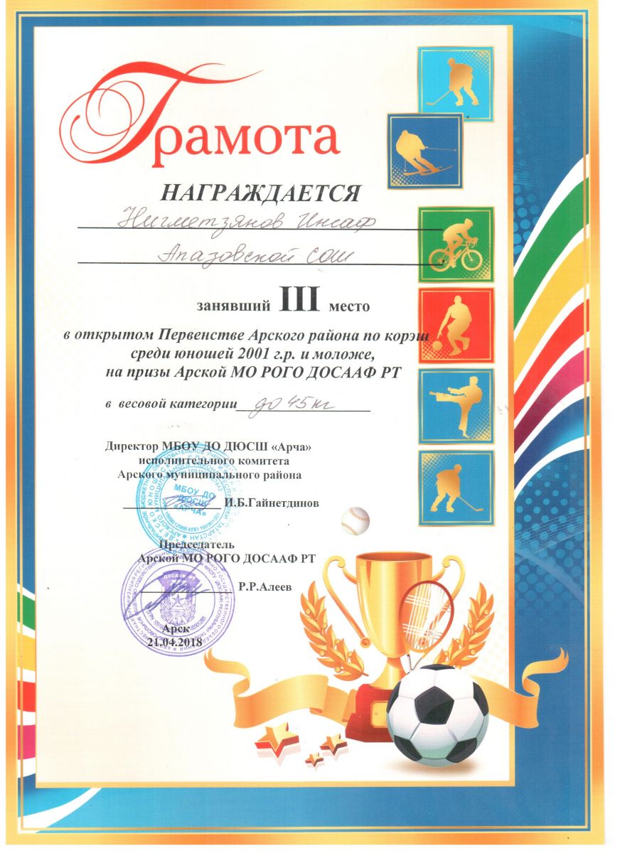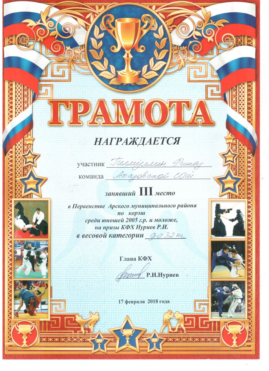 1 место в Первенстве Арского муниципального района по борьбе "Көрәш"