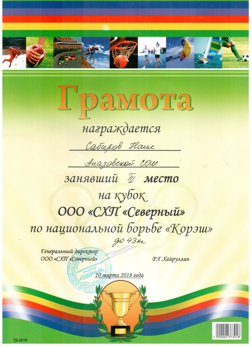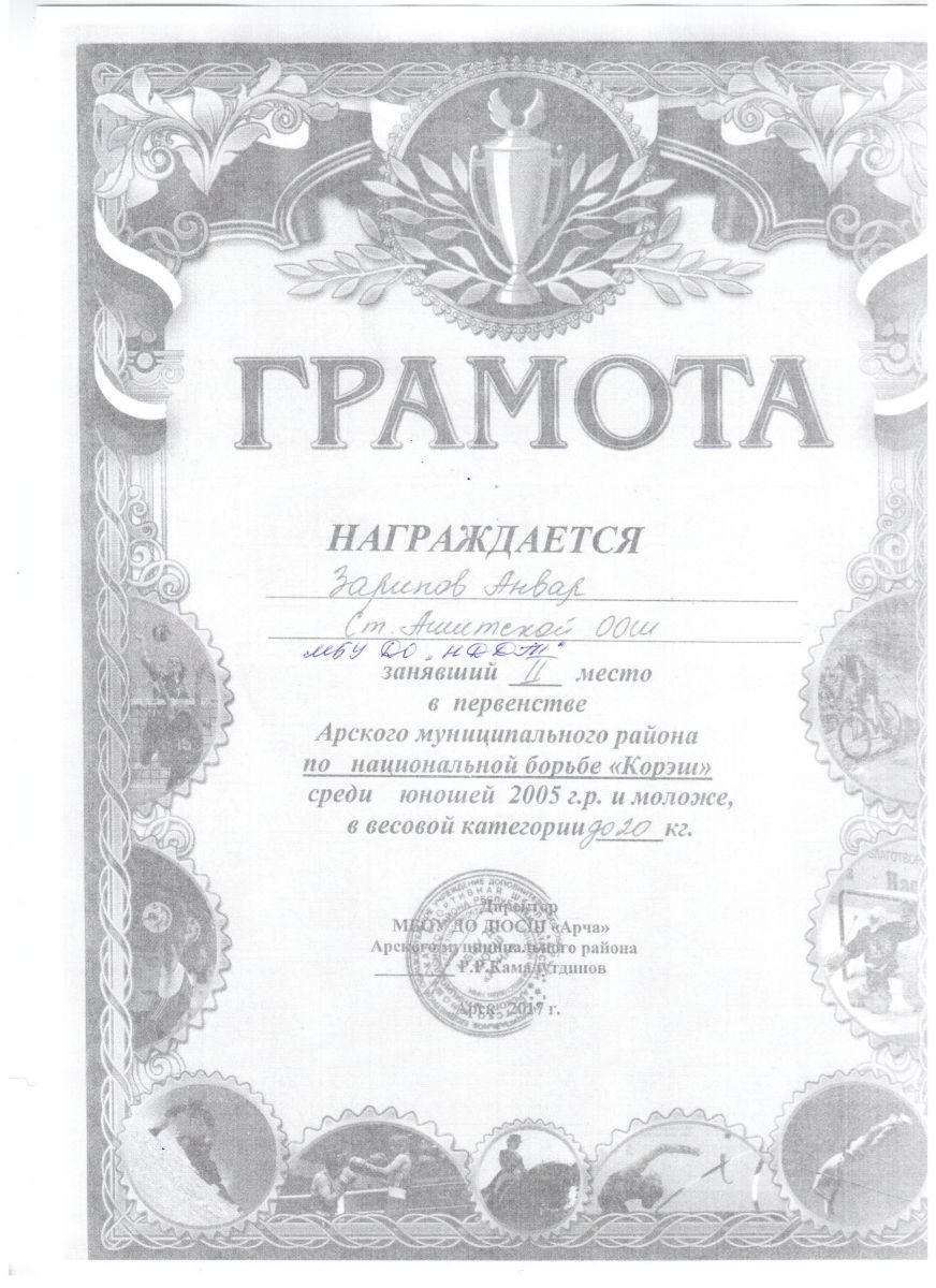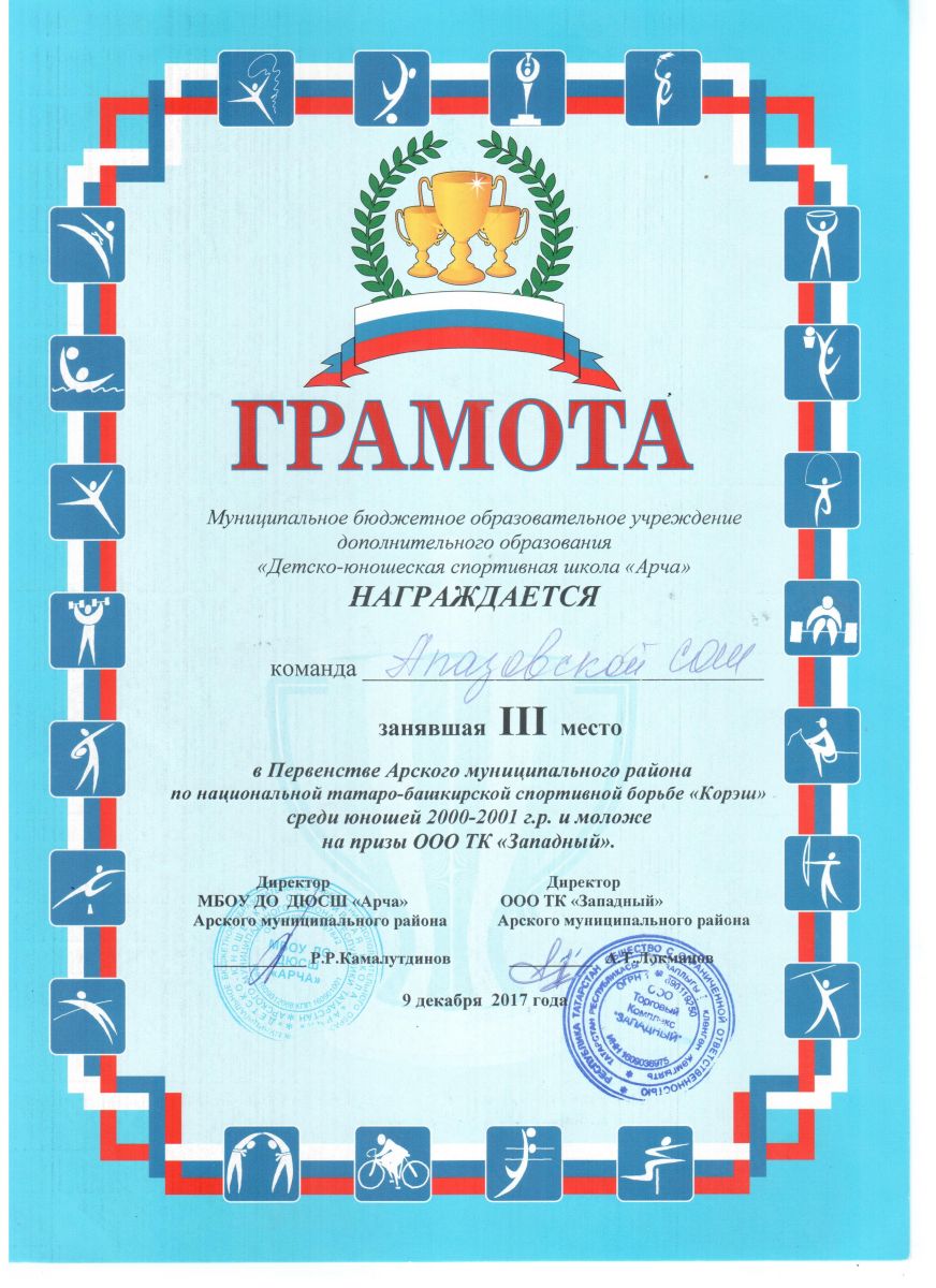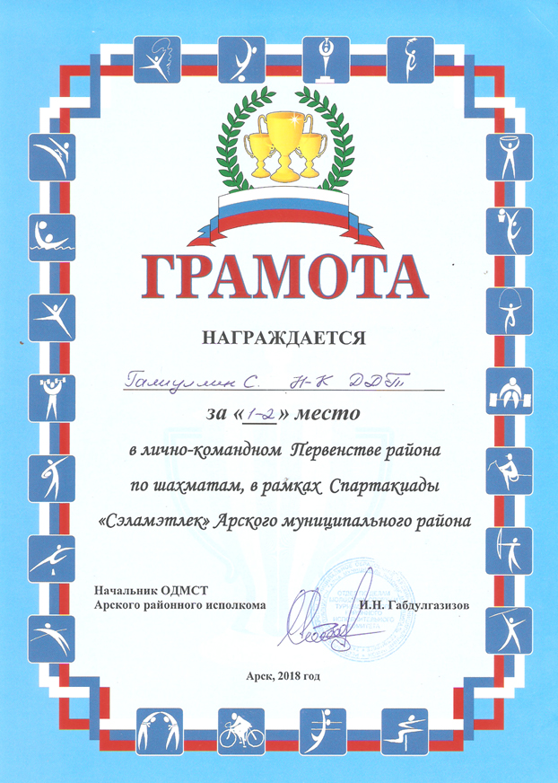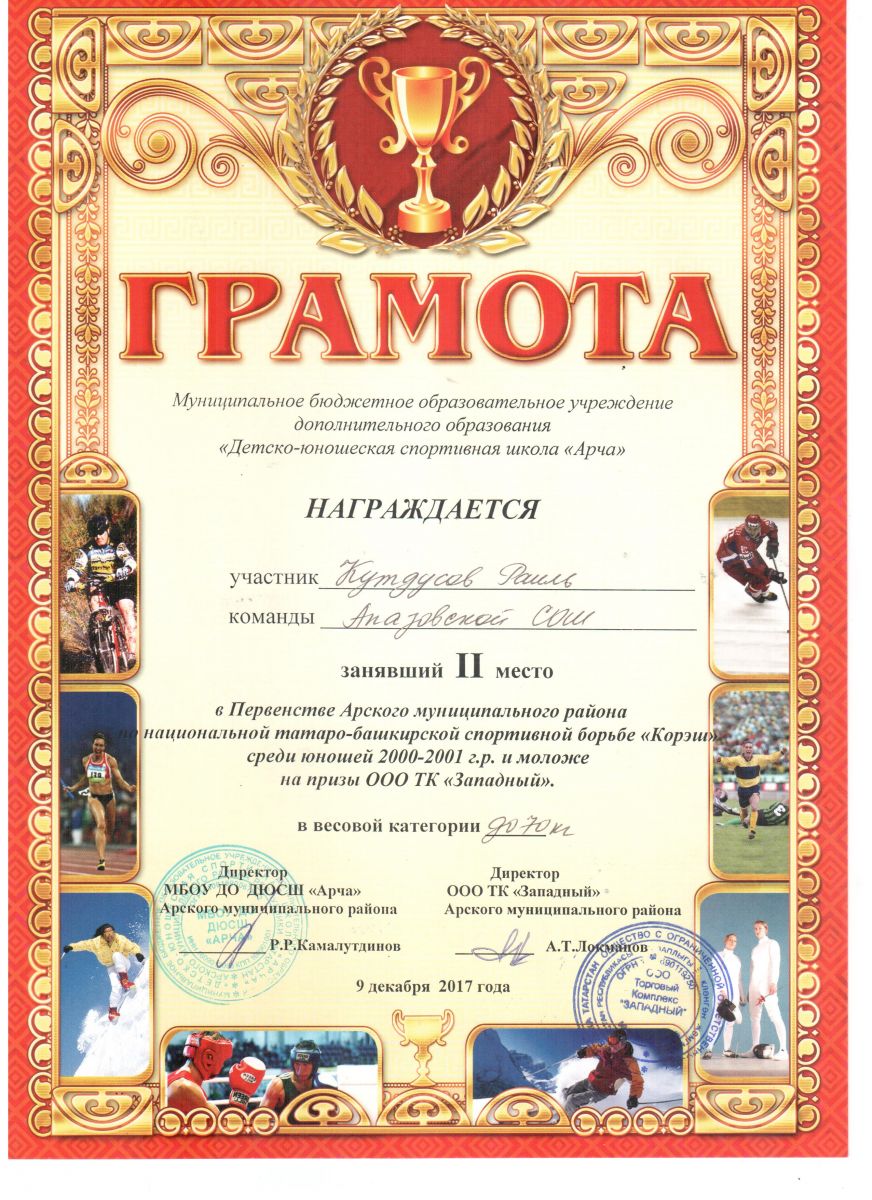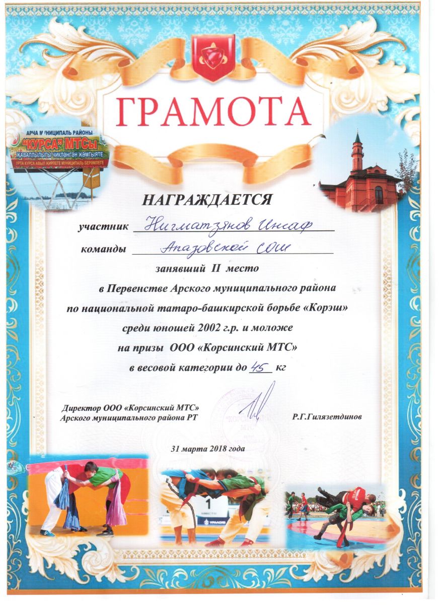1 место в Первенстве Арского муниципального района по борьбе "Көрәш"