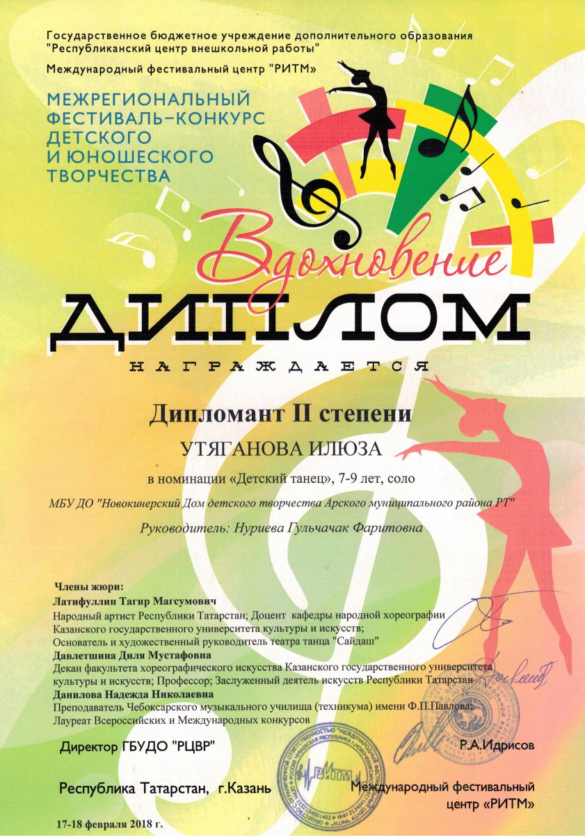 Диплом 2 степени межрегионального конкурса "Вдохновение"