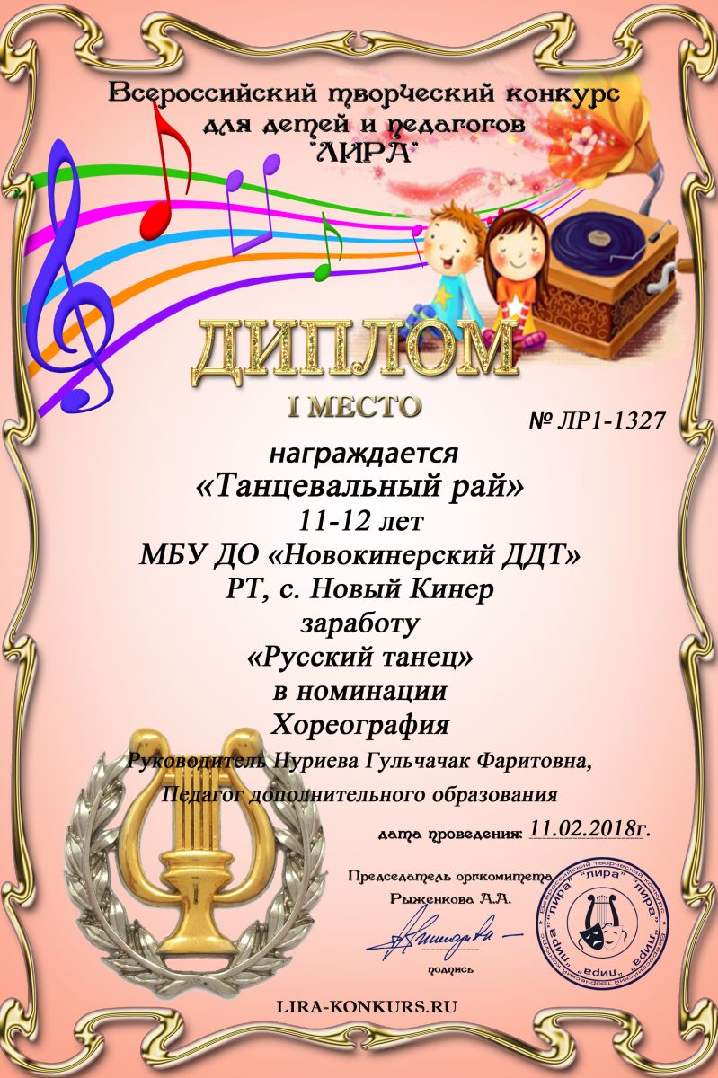 1 место всероссийского конкурса талантов "Музыкальный номер"