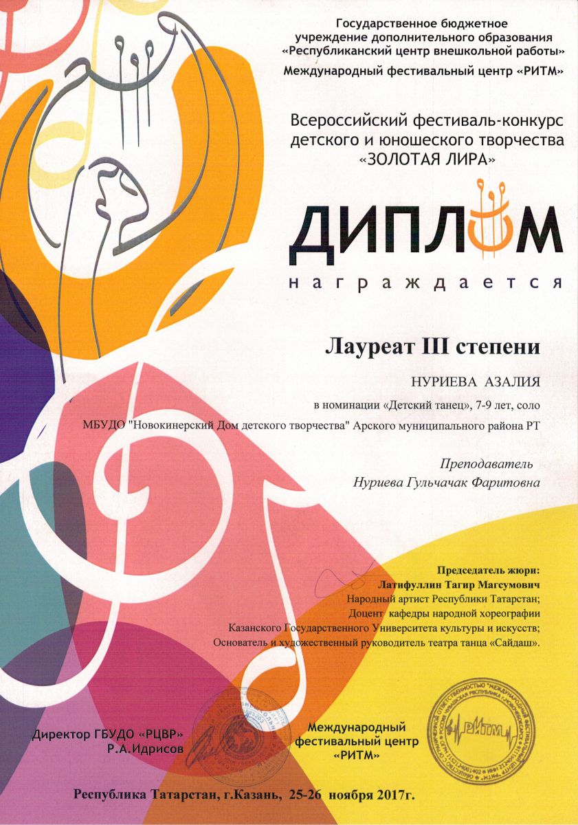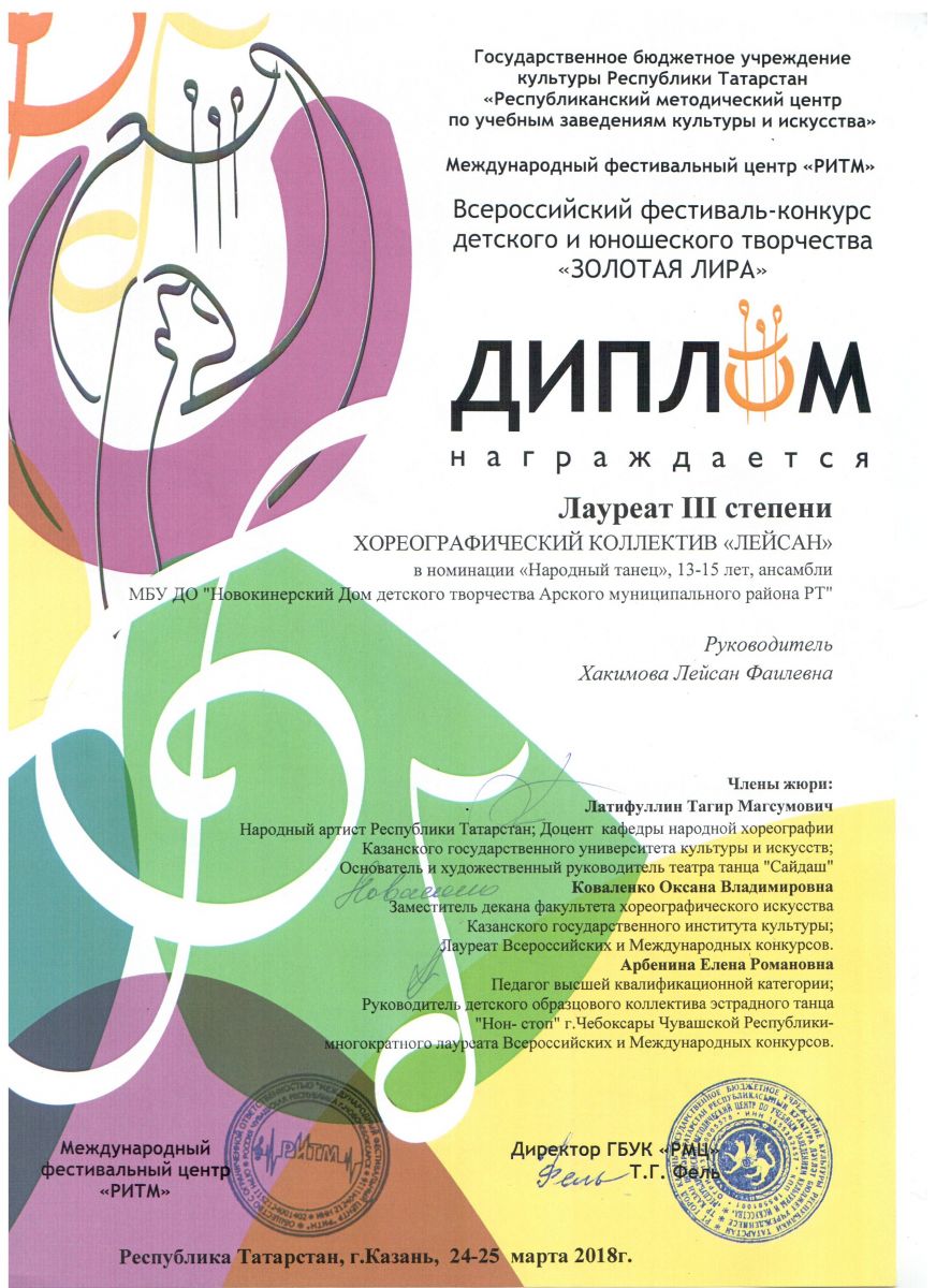 Лауреат 3 степени Всероссийского конкурса "Золотая Лира"