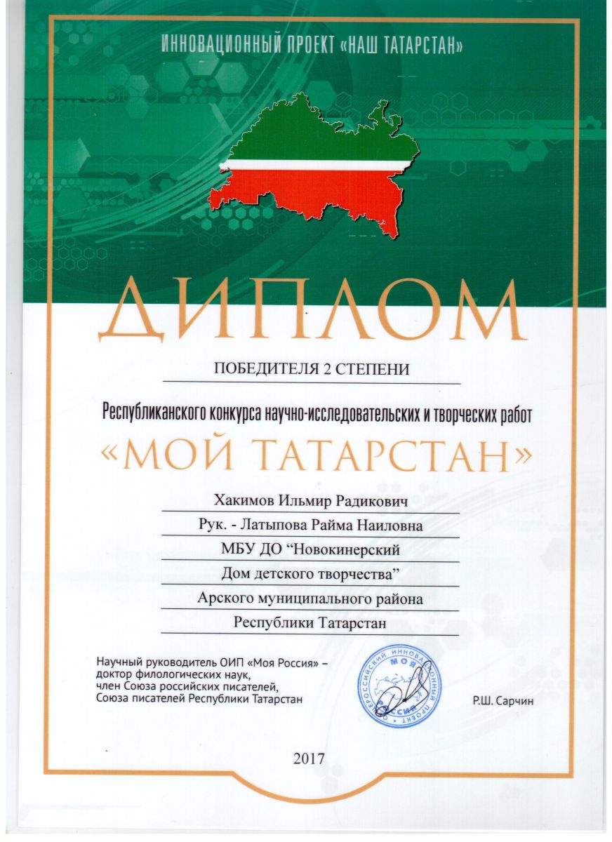 Диплом 2 степени Республиканского конкурса "Мой Татарстан"