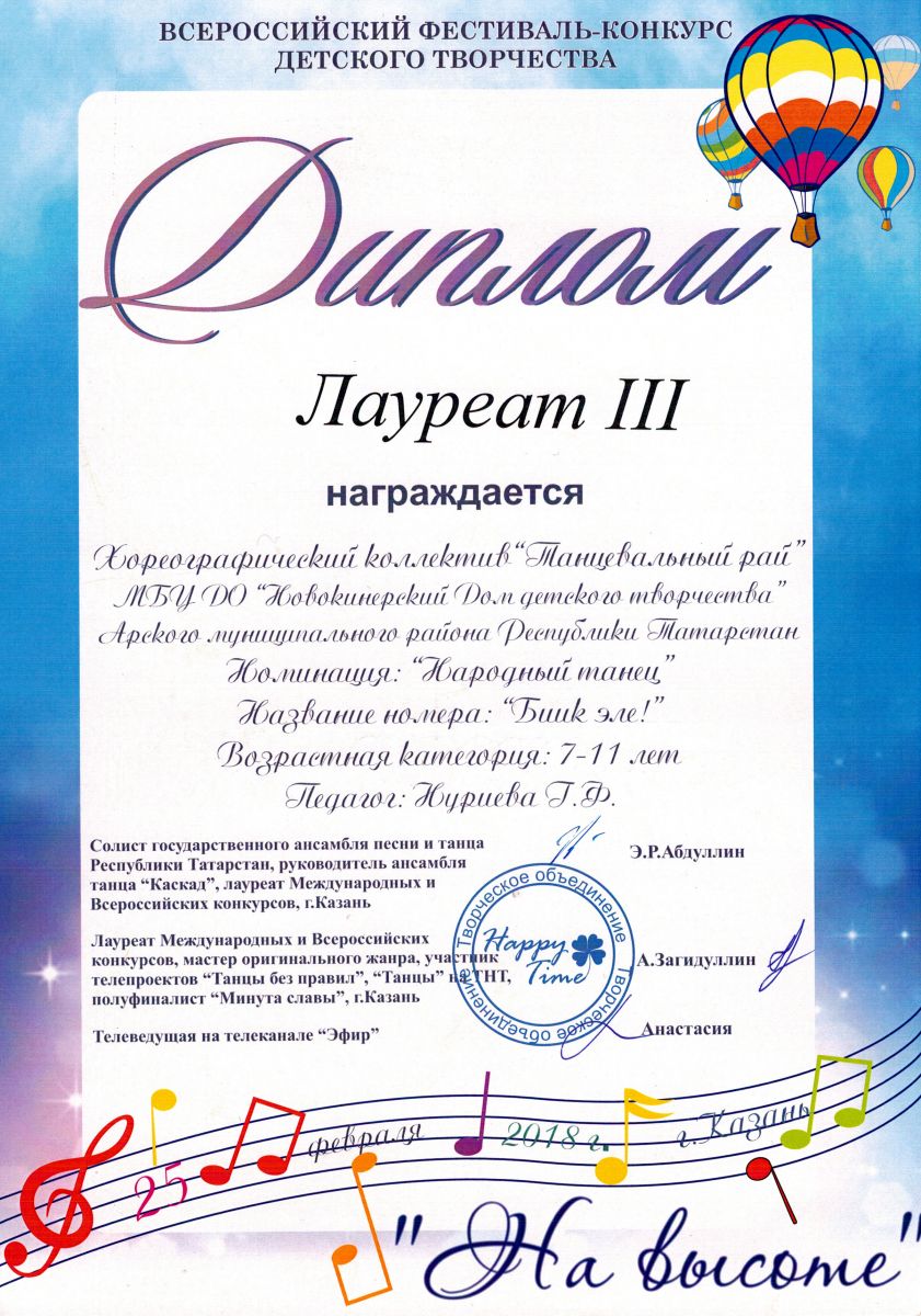 Лауреат 3 степени всероссийского конкурса "На высоте"