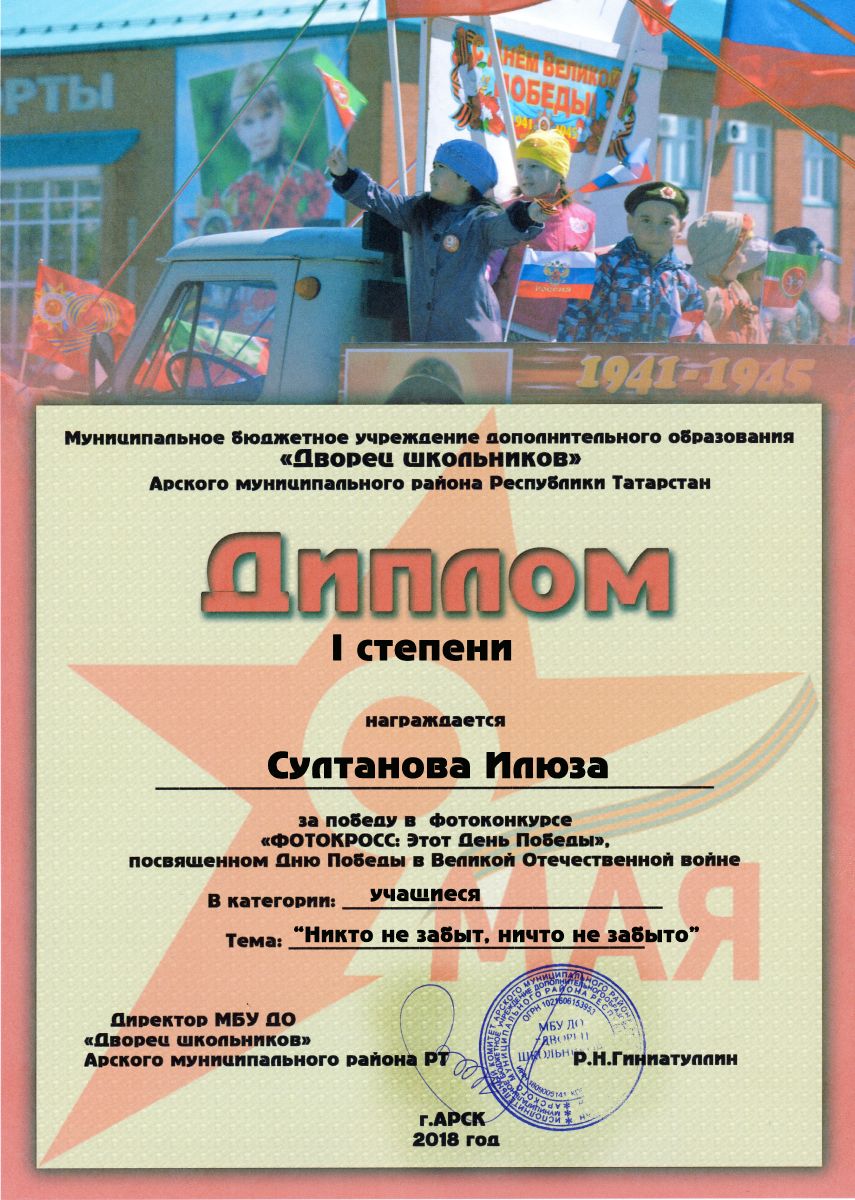 Диплом 1 степени "Никто не забыт, ничто не забыто"