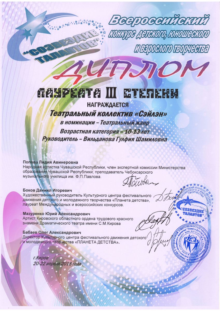 Лауреат 3 степени всероссийского конкурса "Созвездие Талантов"