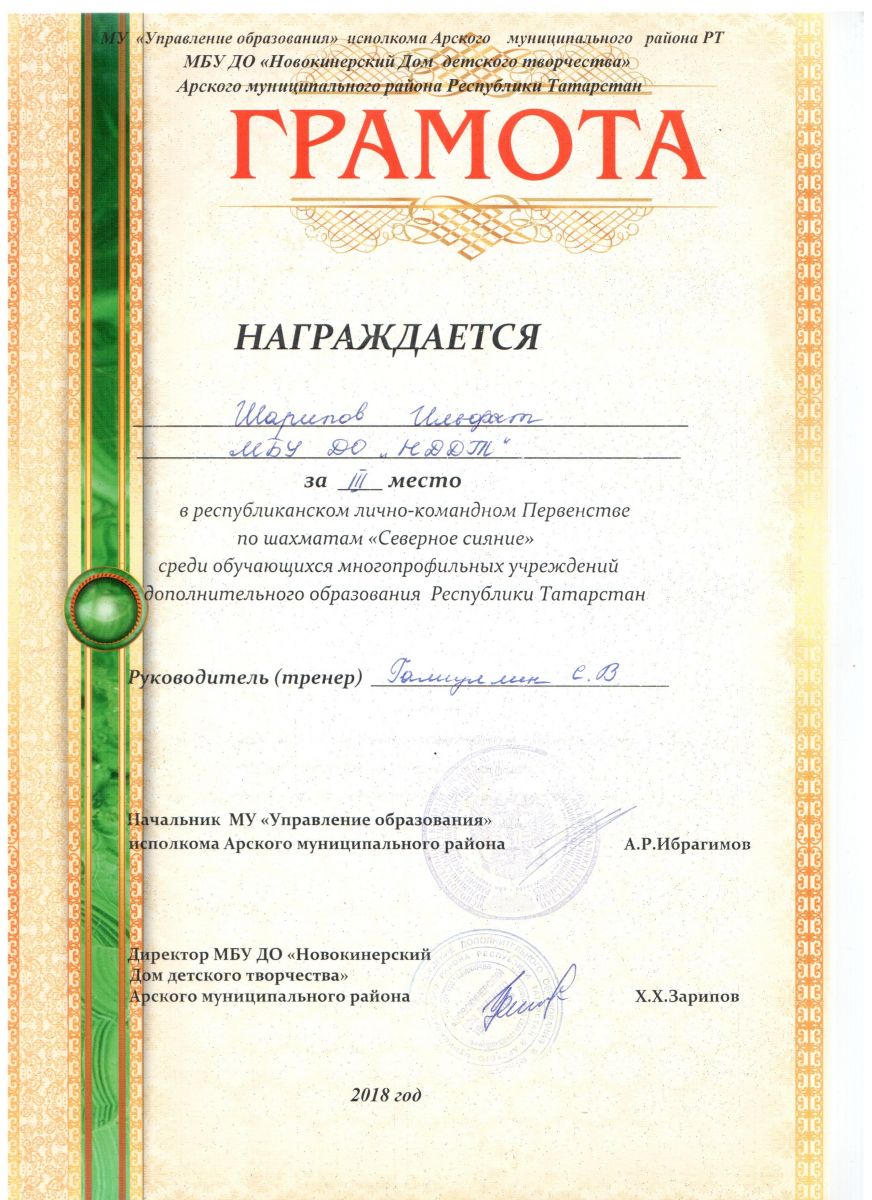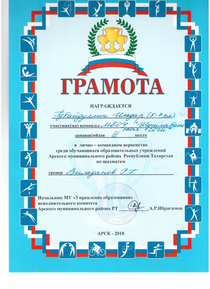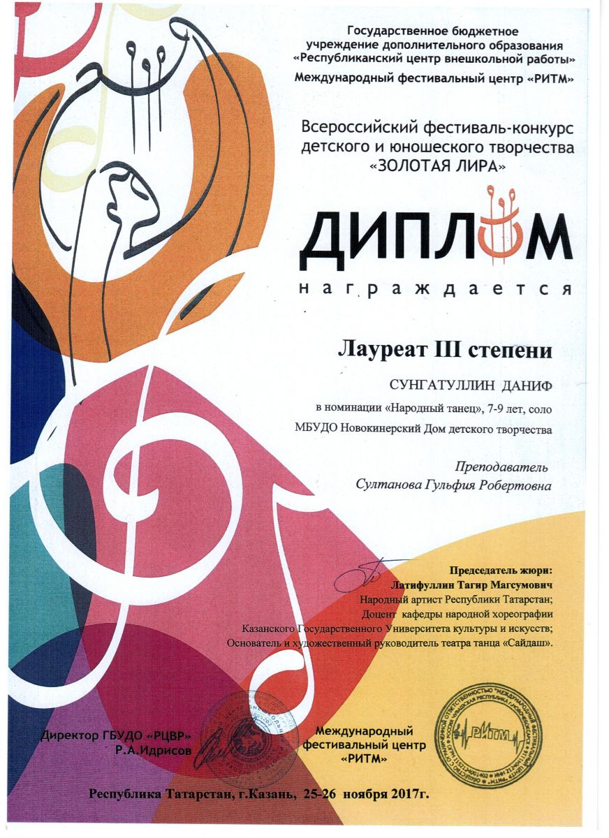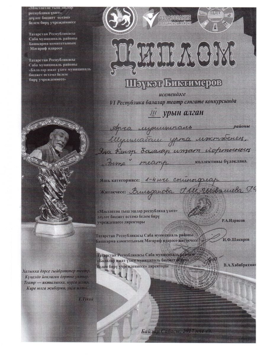 3 место в республиканском конкурсе им.Ш.Биктимерова
