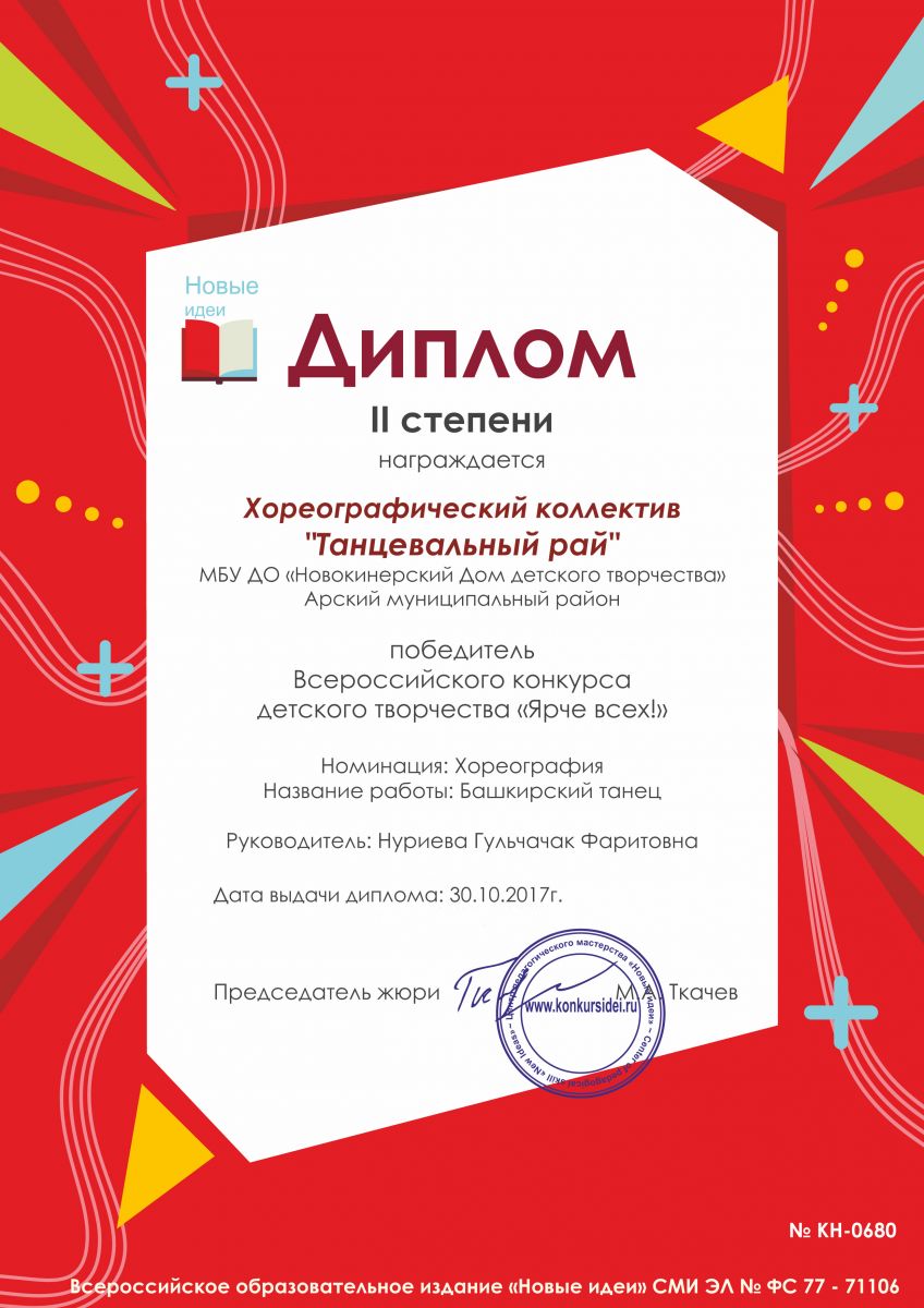 Диплом 2 степени всероссийского конкурса "Ярче всех"