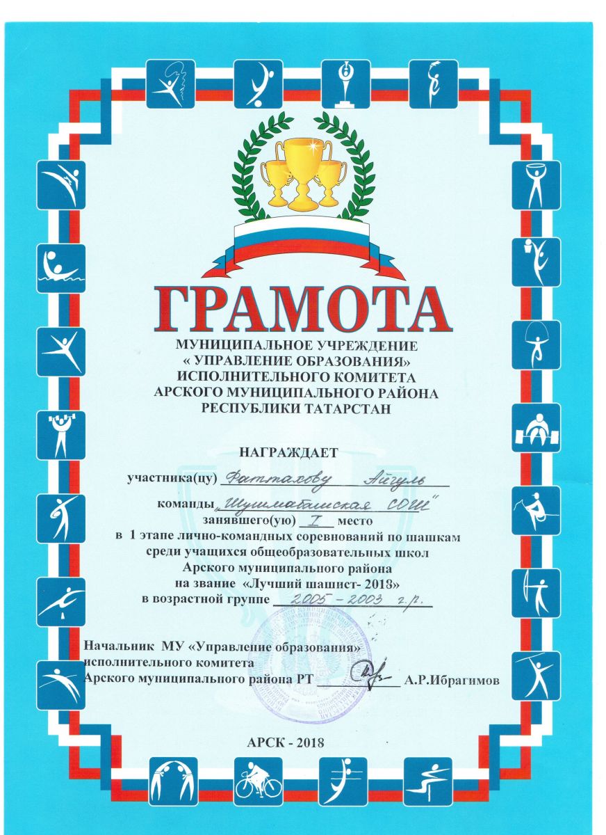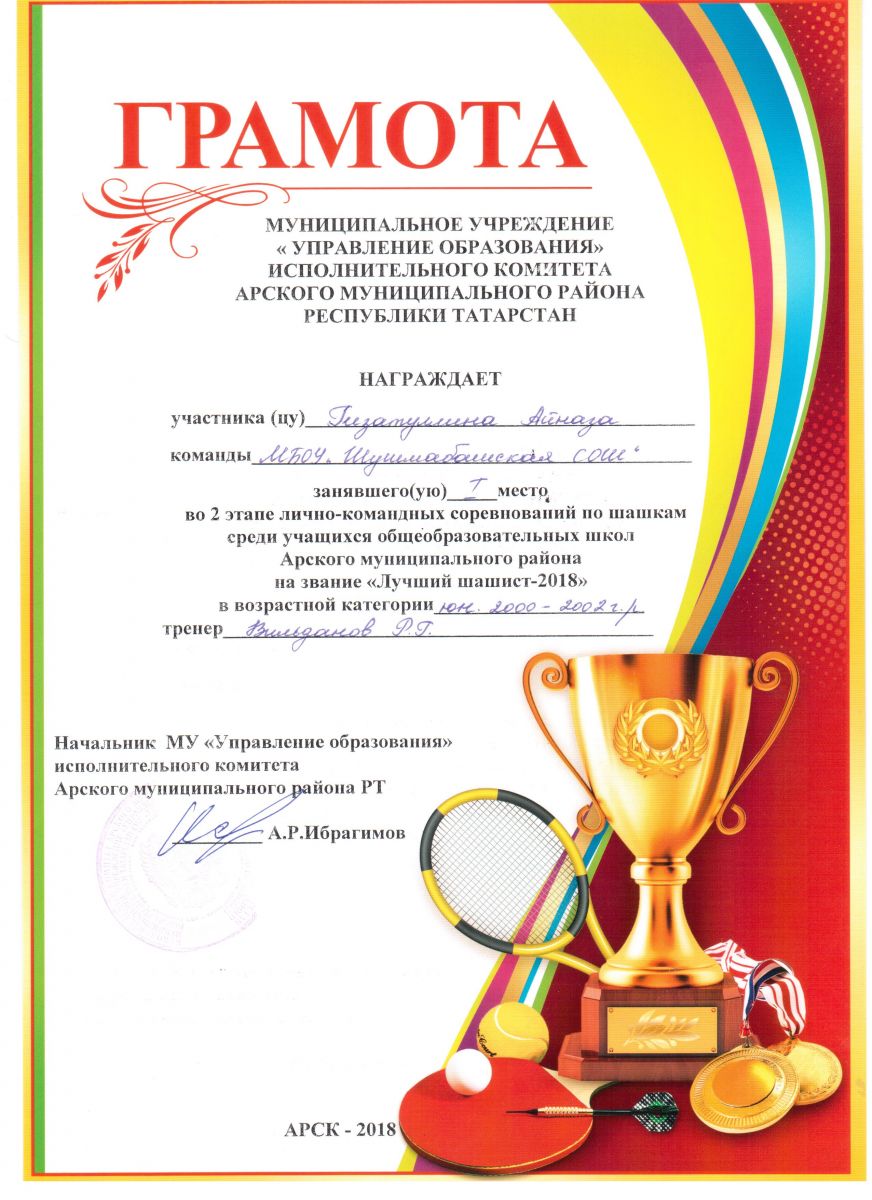 1 место в республиканском конкурсе им.Ш.Биктимерова