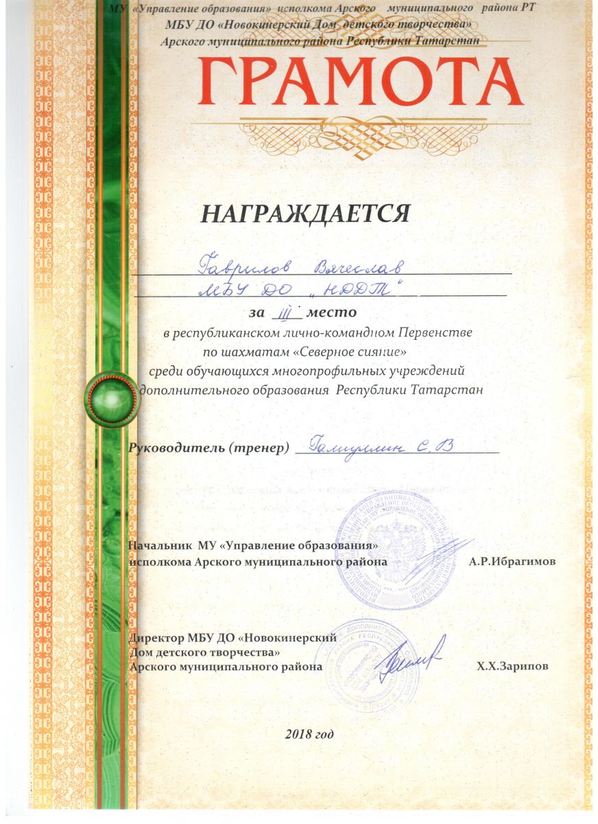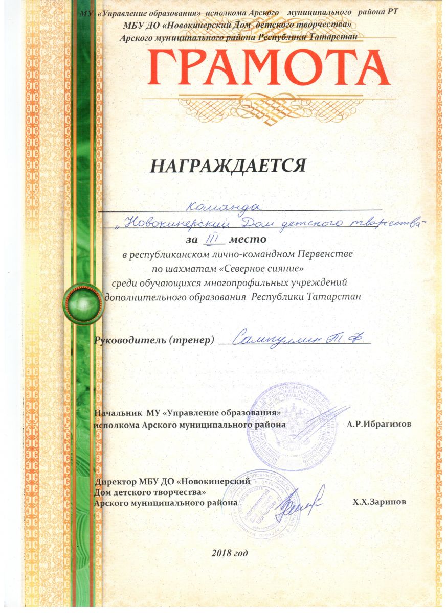 3 место в республиканском лично-командном Первенстве по шахматам "Северное сияние"