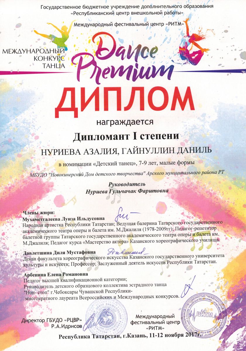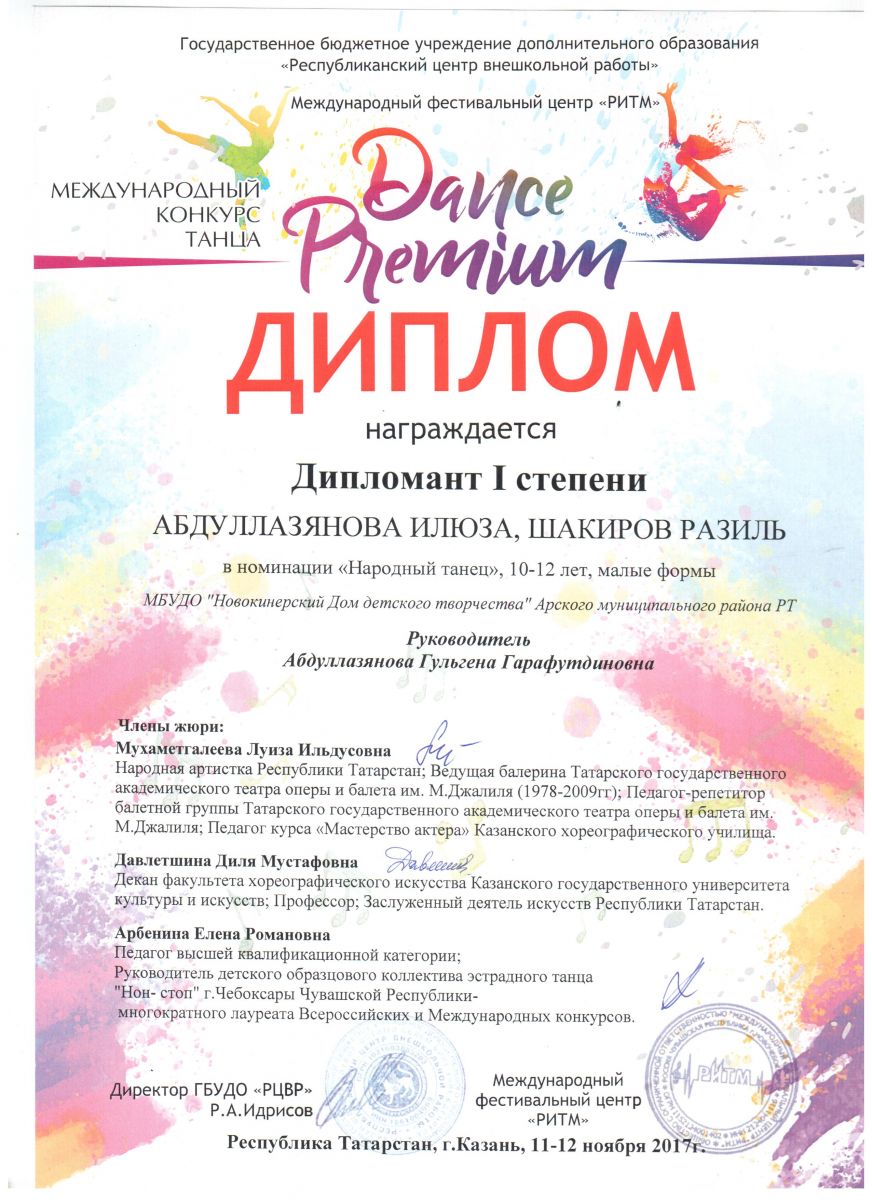 Диплом 1 степени в Международном конкурсе "Dance Premium"