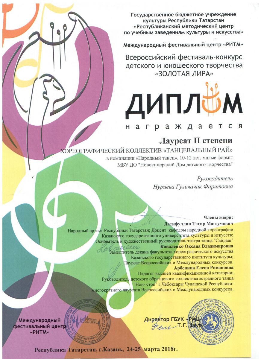 Лауреат 2 степени Всероссийского конкурса "Золотая Лира"