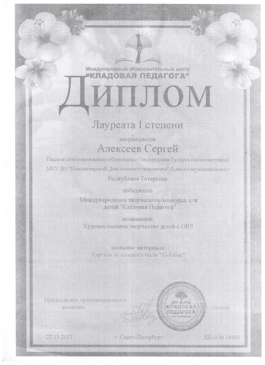 Лауреат 1 степени международного конкурса "Кладовая Педагога"