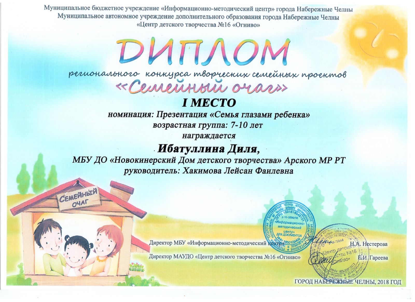 1 место регионального конкурса творческих семейных проектов "Семейный очаг"