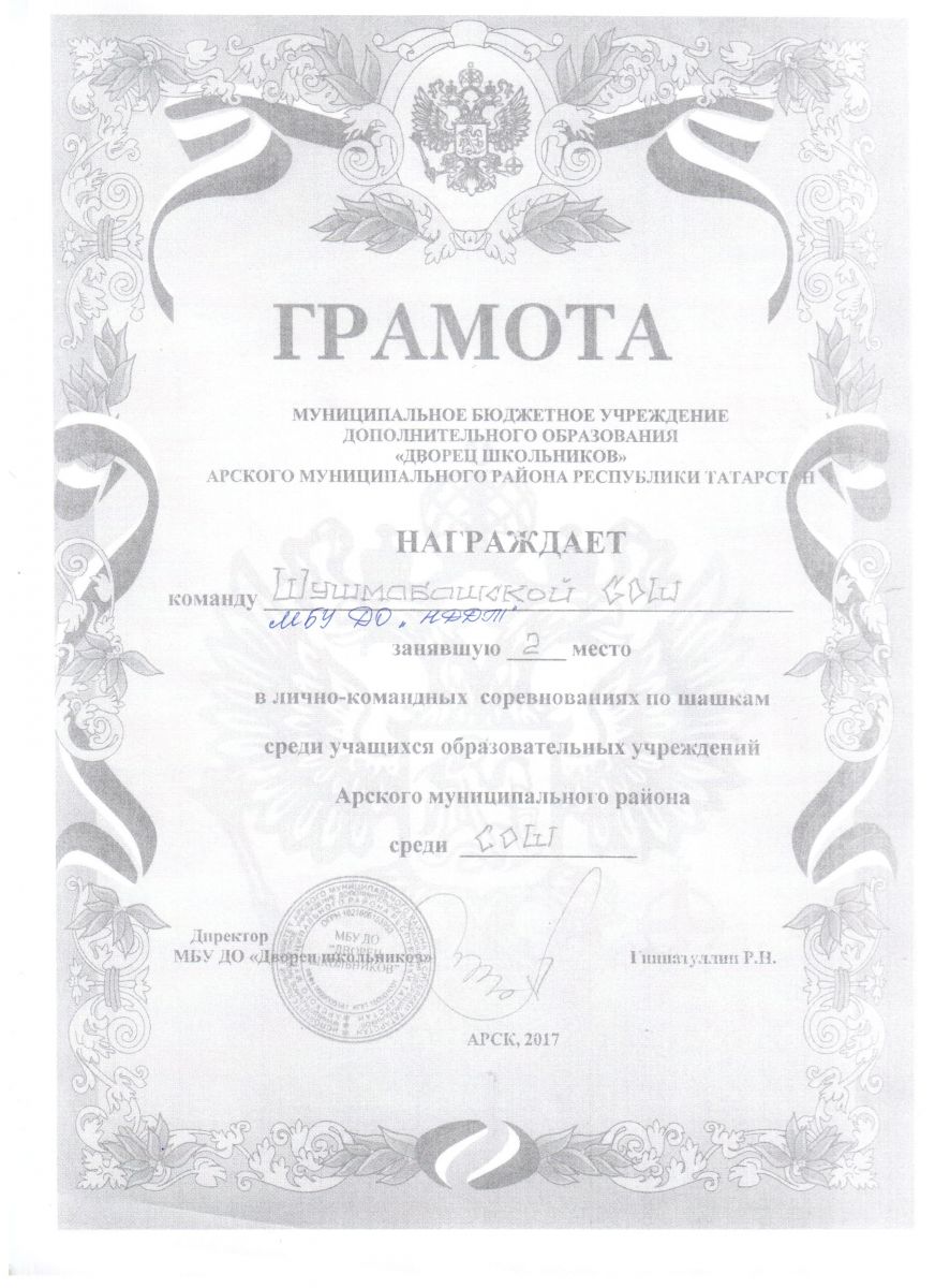 2 место в республиканском лично-командном первенстве (русские шашки+шахматы) "Северное сияние"