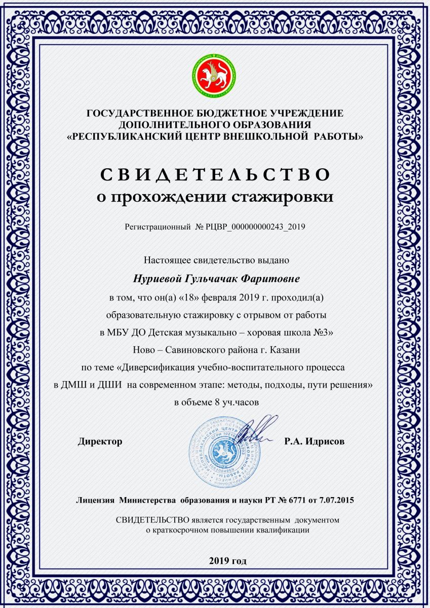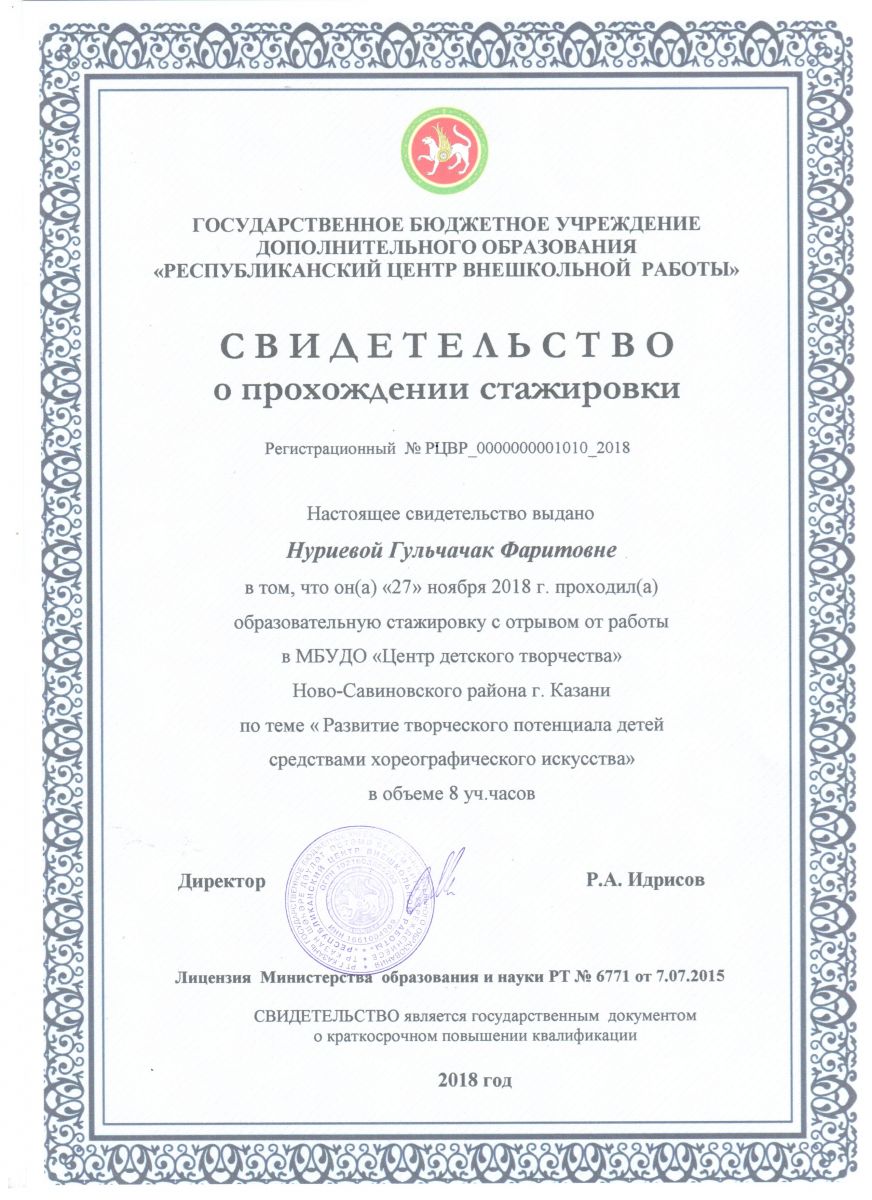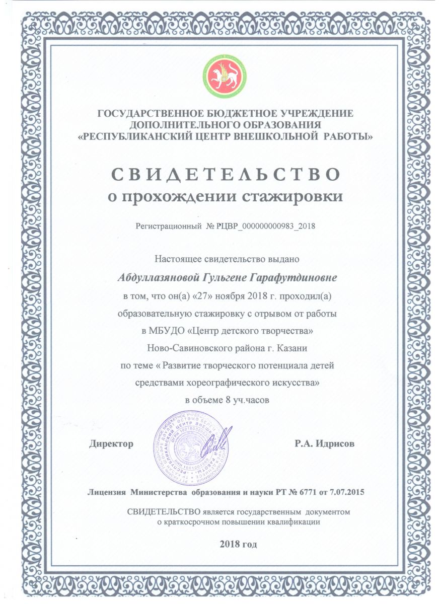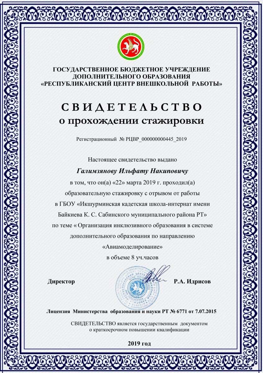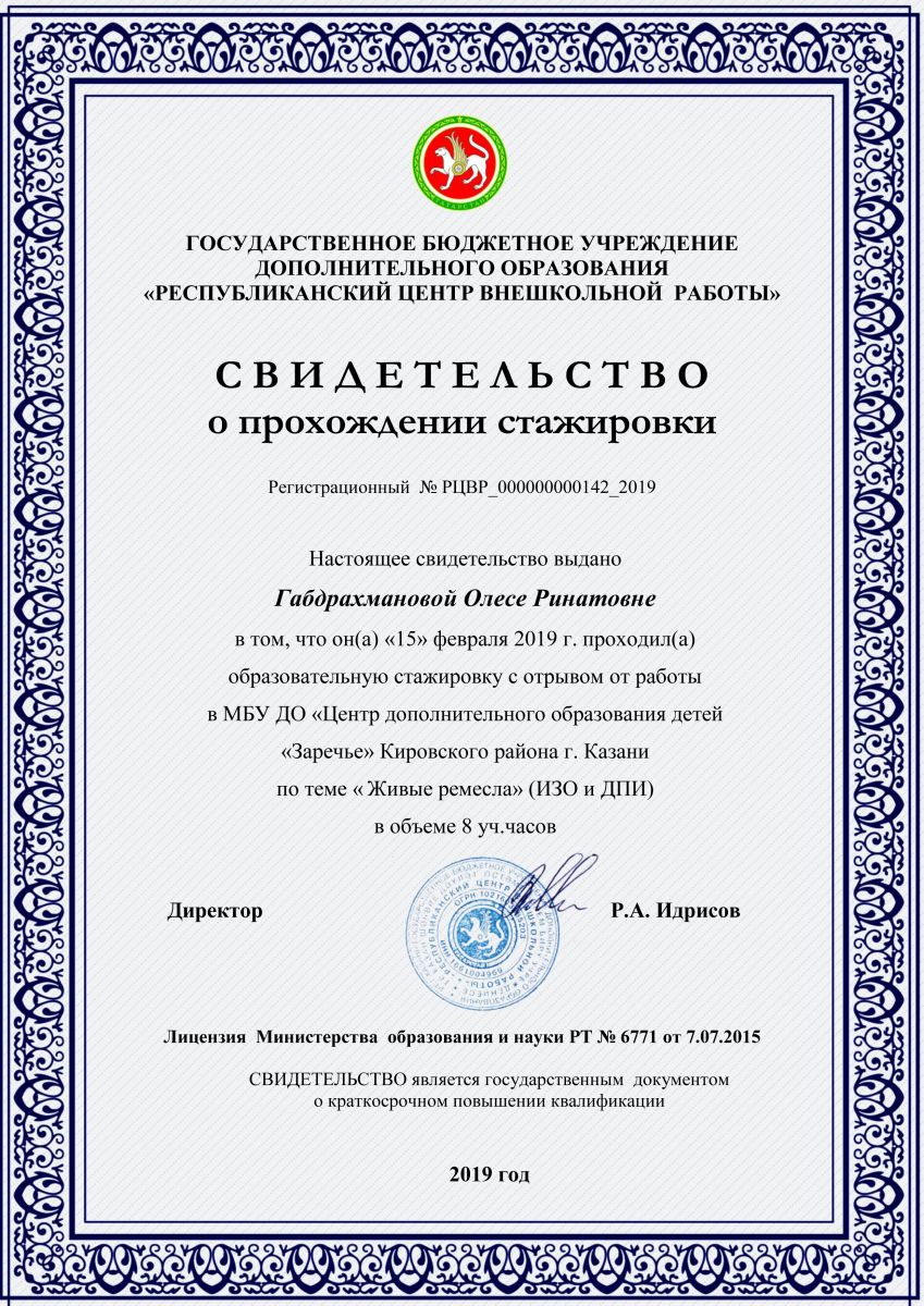 Свидетельство о прохождении стажировки