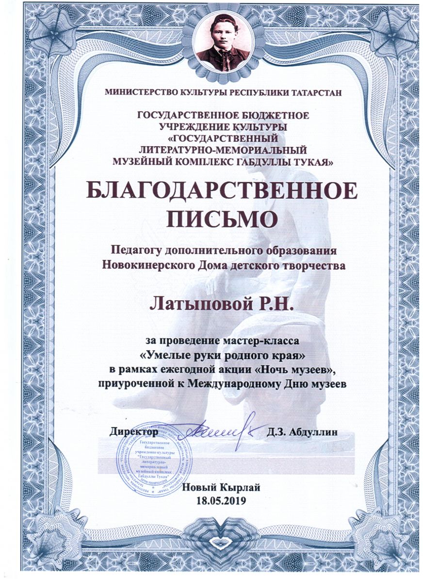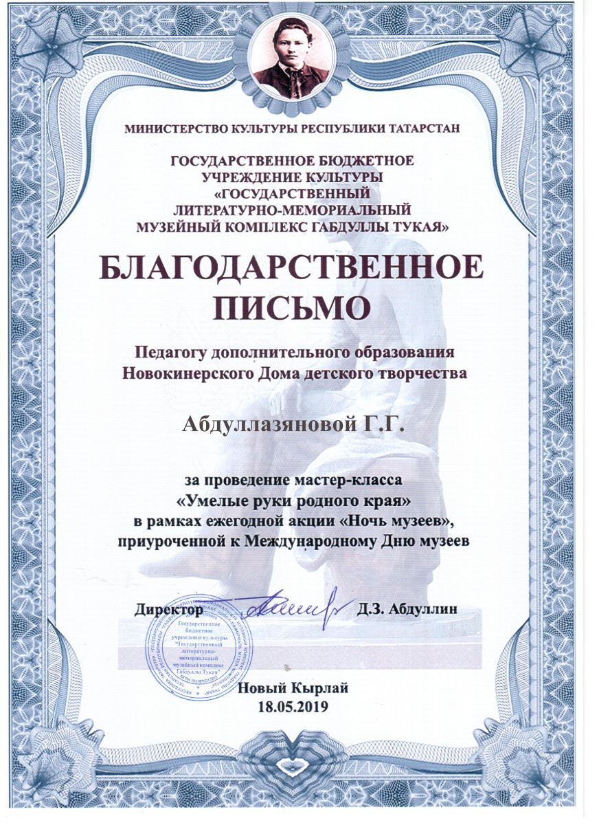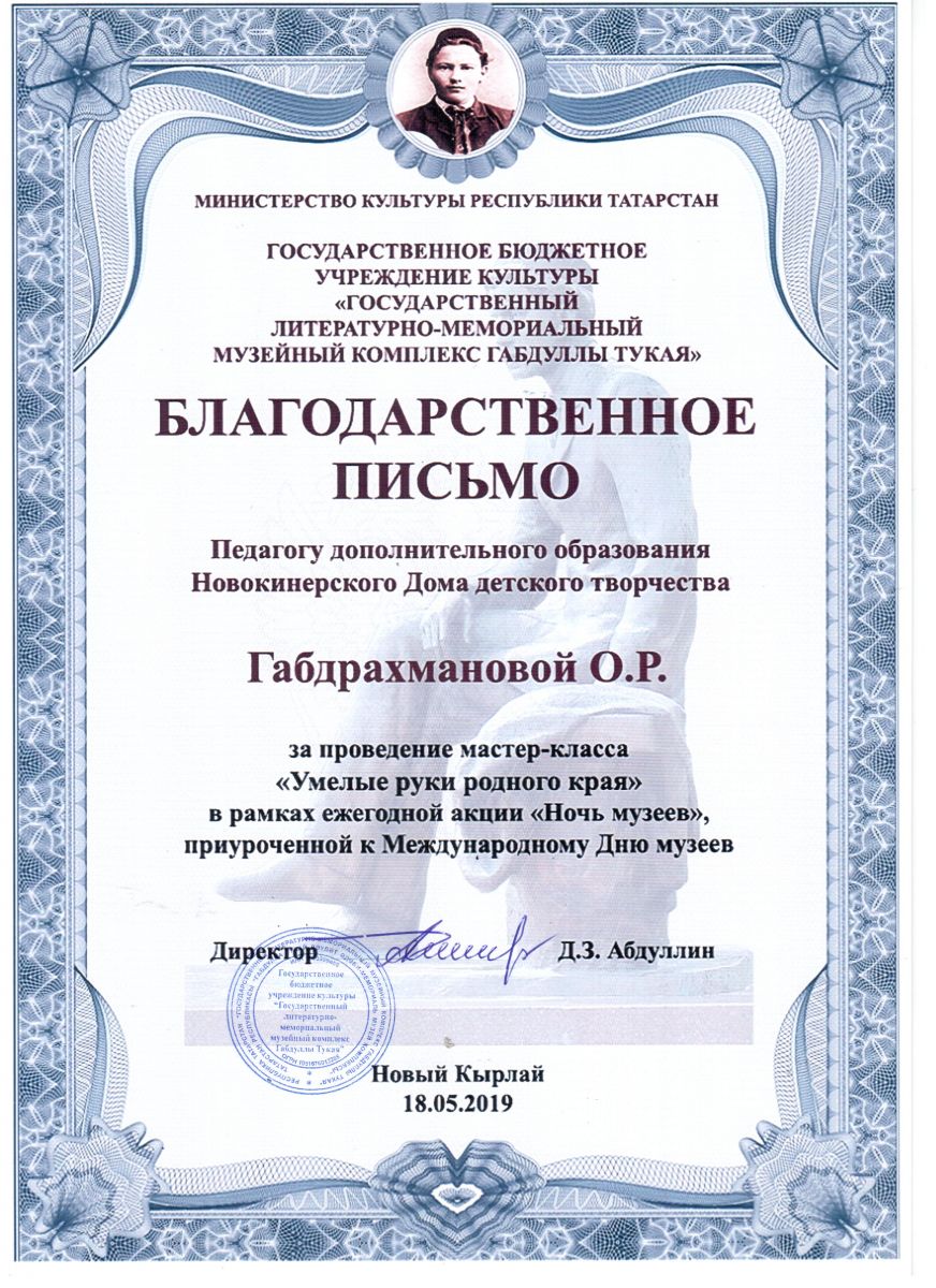 Благодарственное письмо за проведение мастер-класса