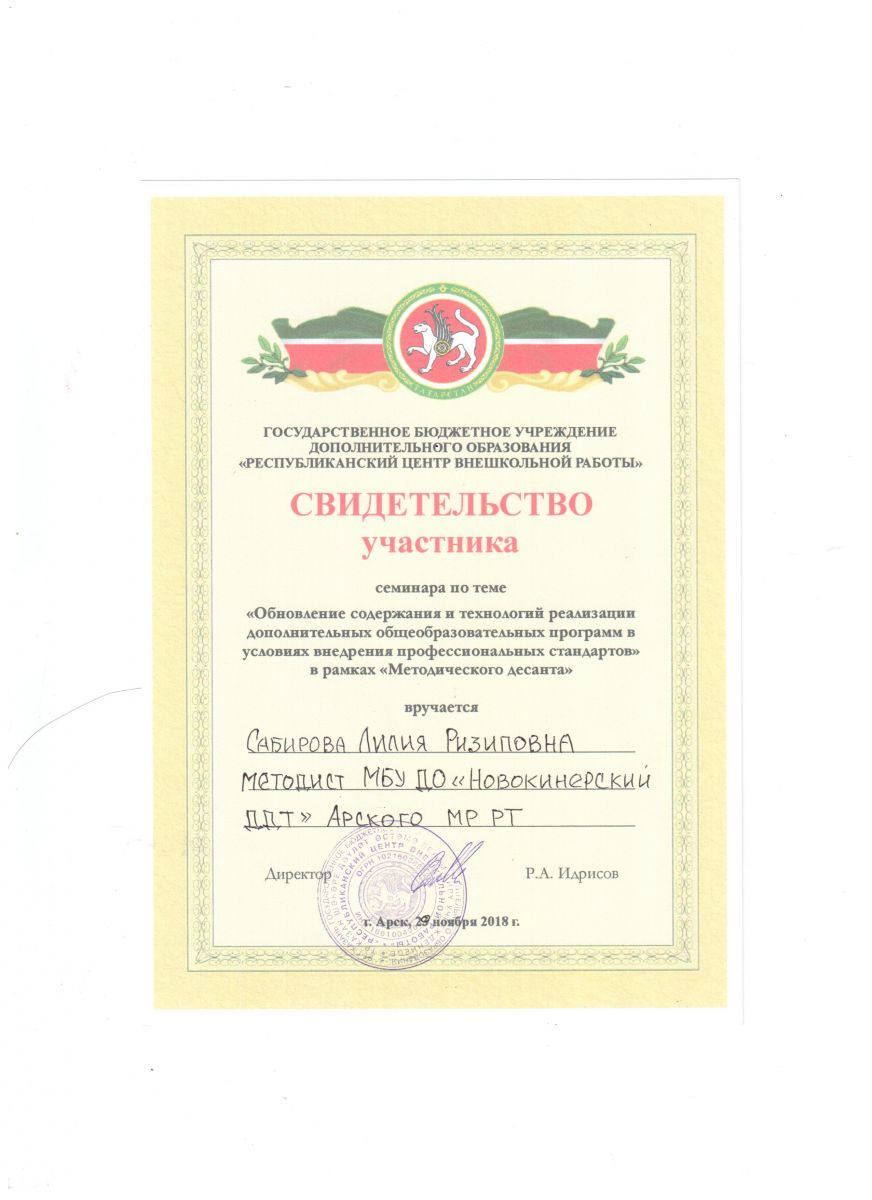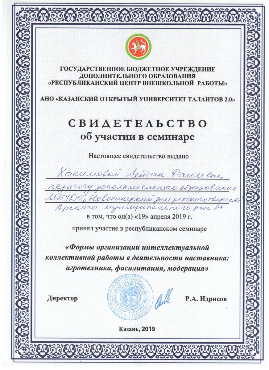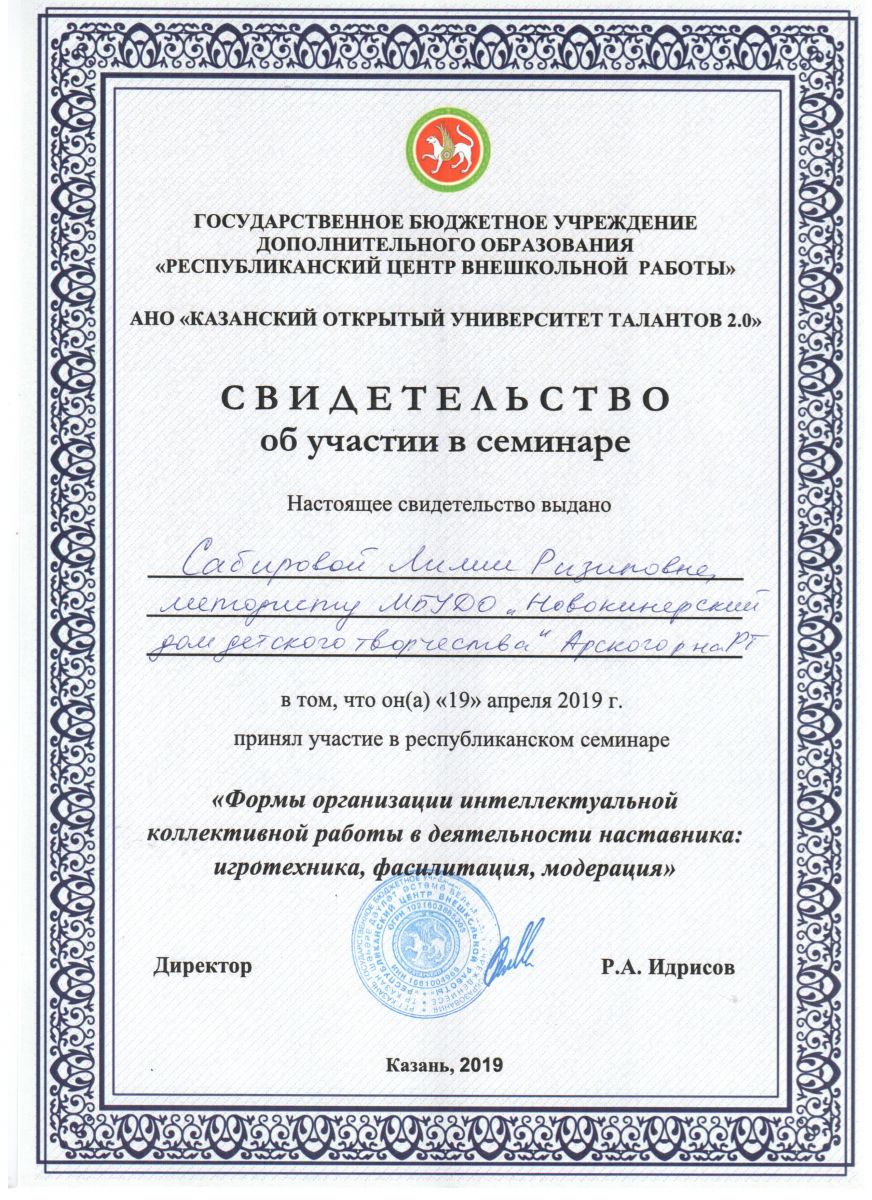 Свидетельство участника семинара