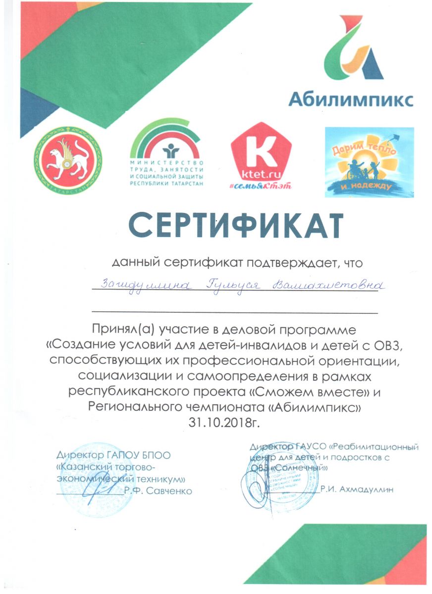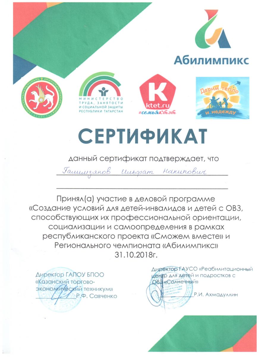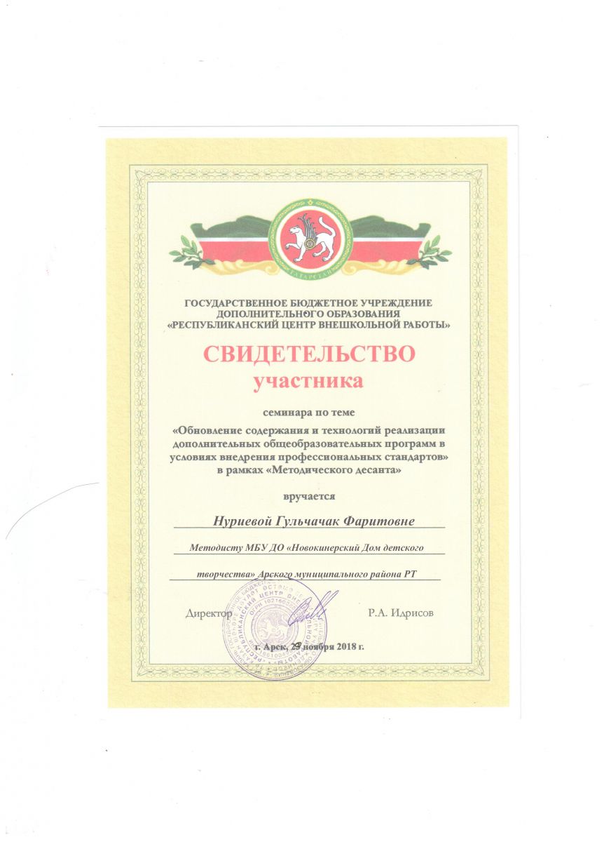 Свидетельство участника семинара
