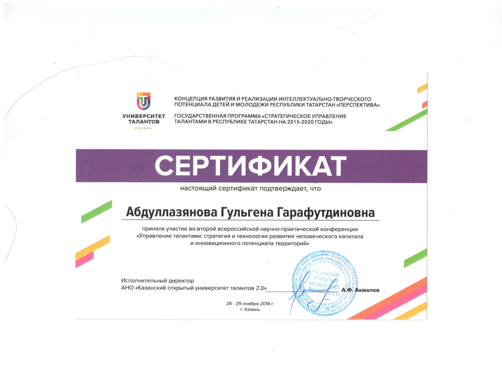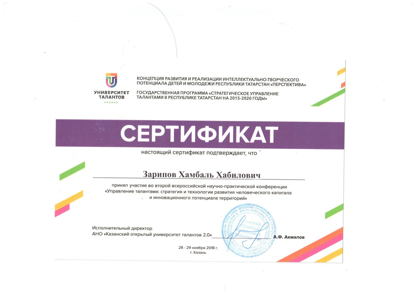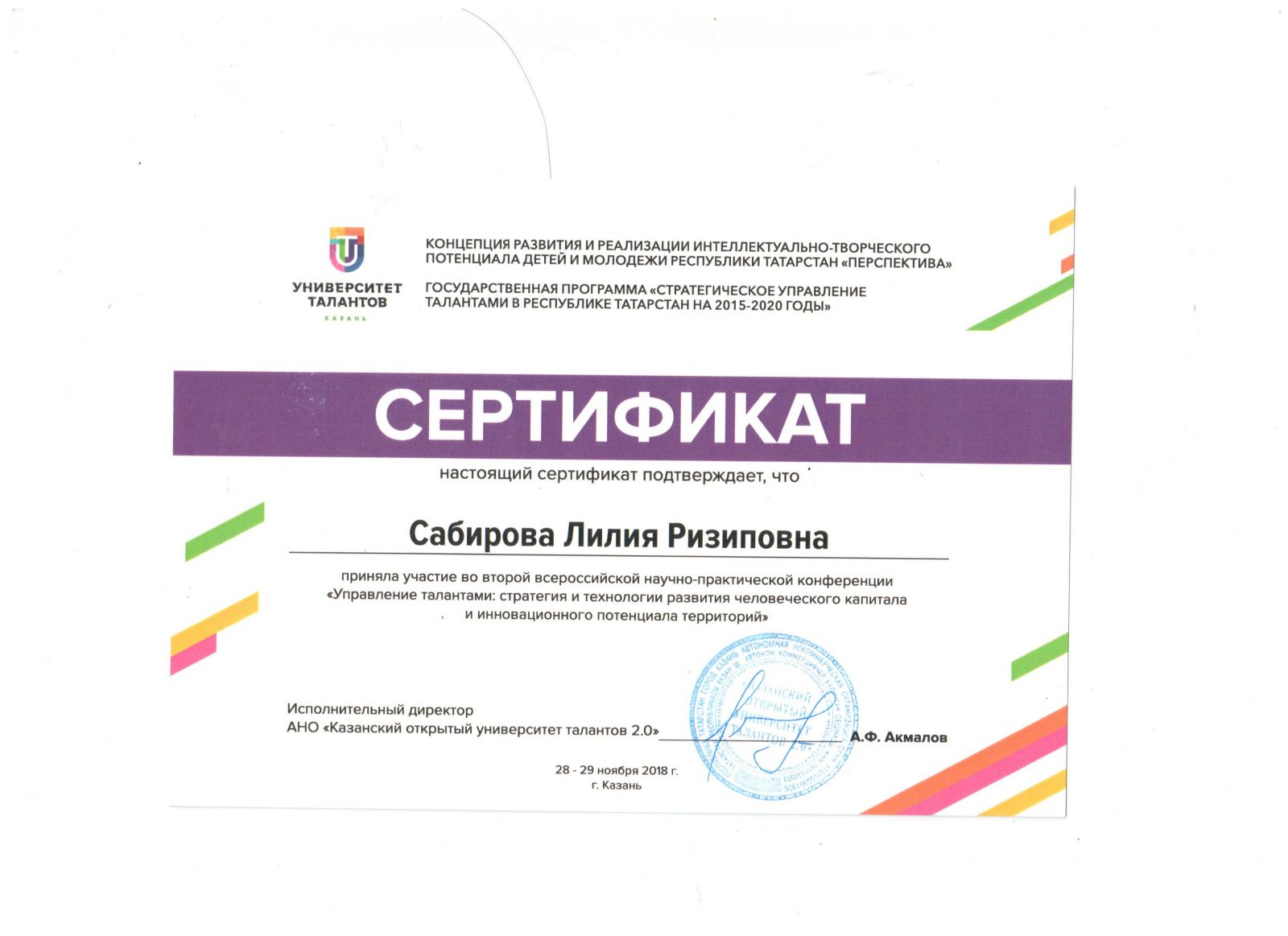 Сертификат участника деловой программы
