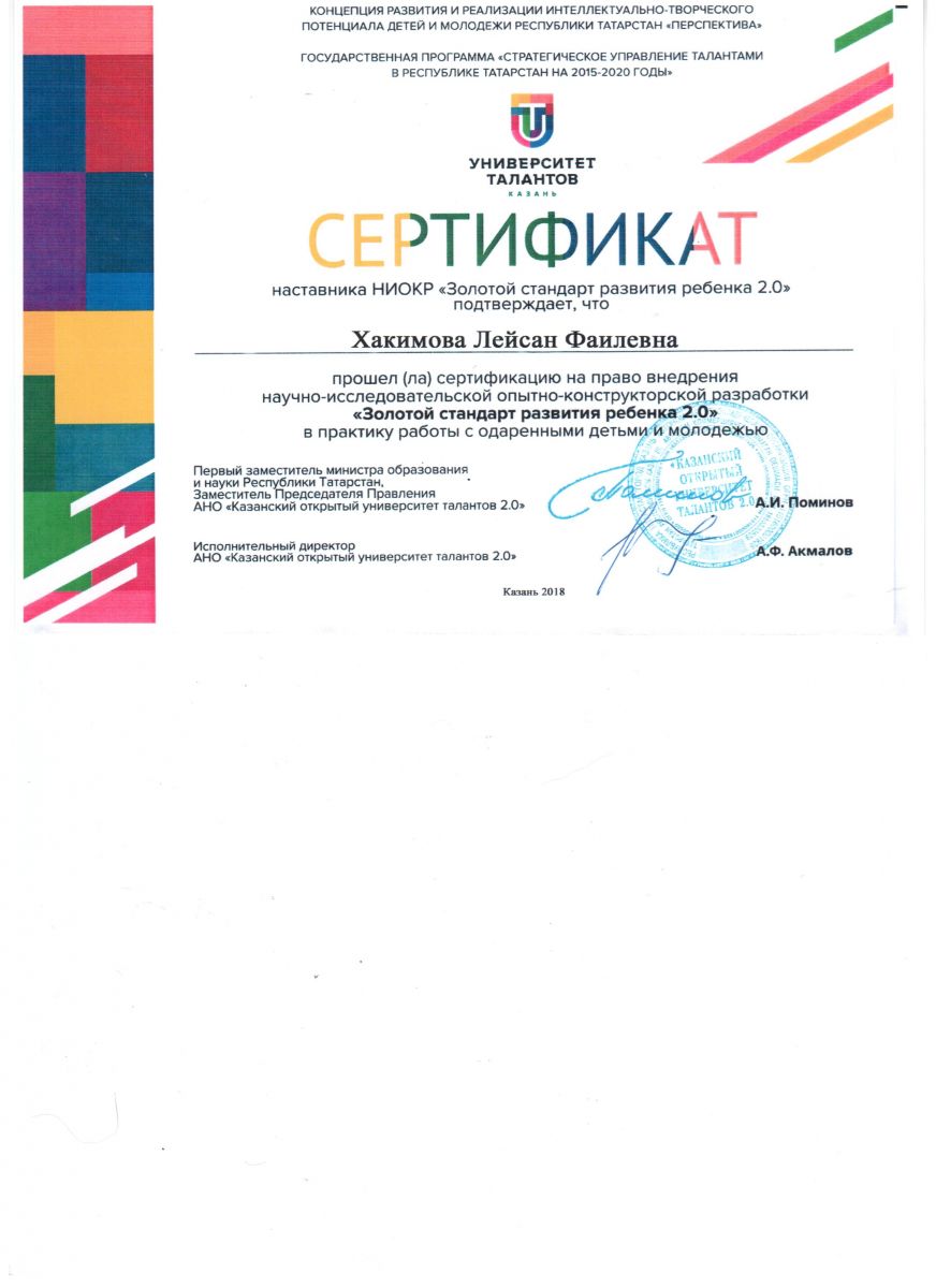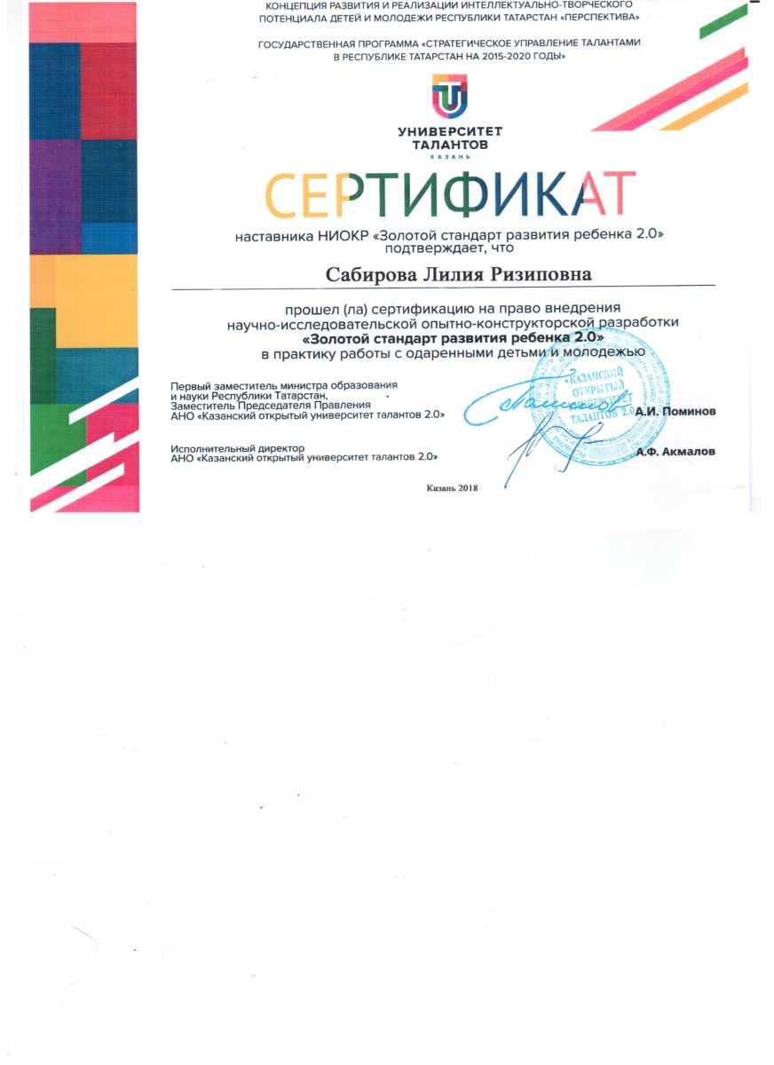 Сертификат - "Золотой стандарт развития ребенка"
