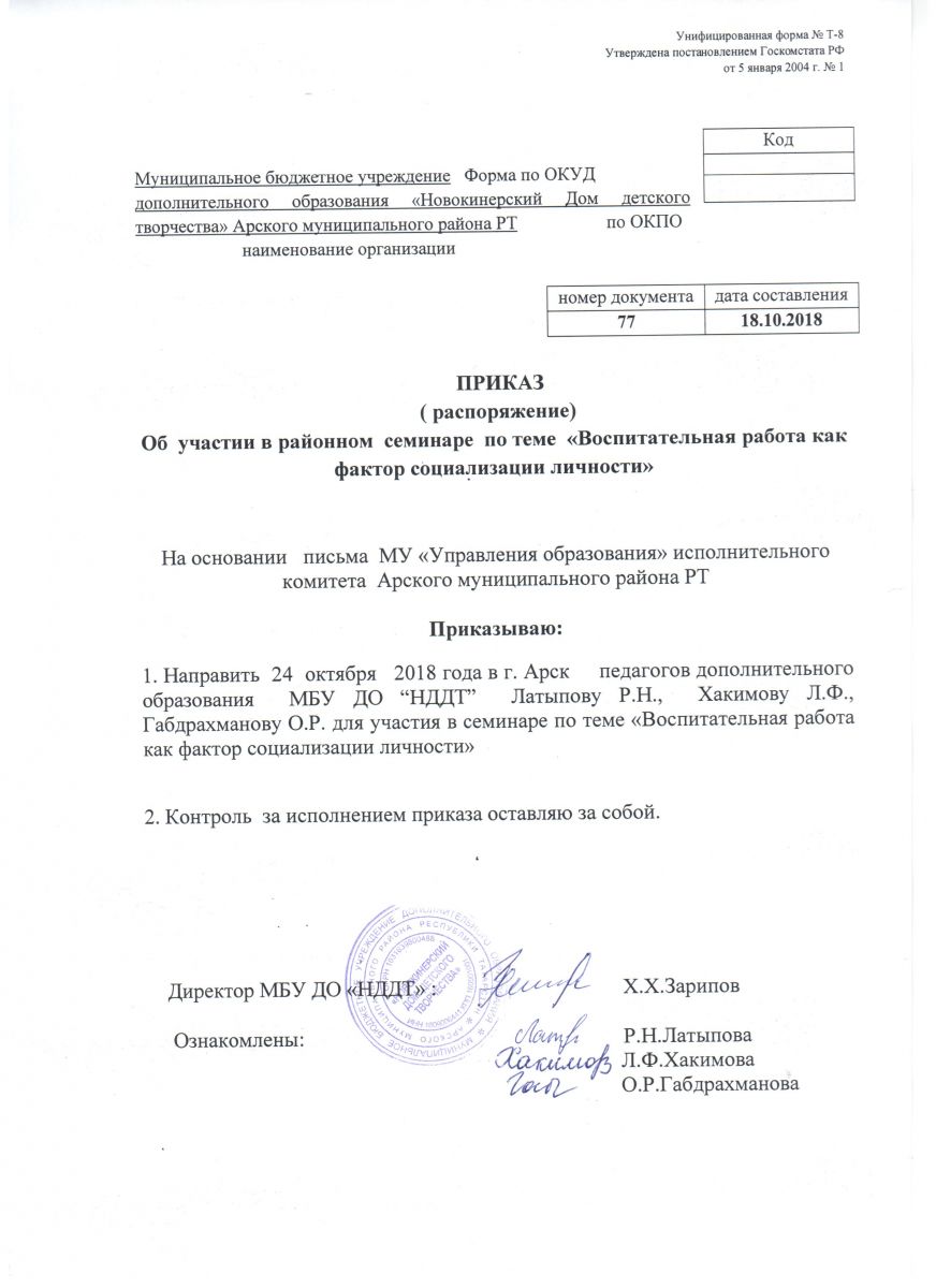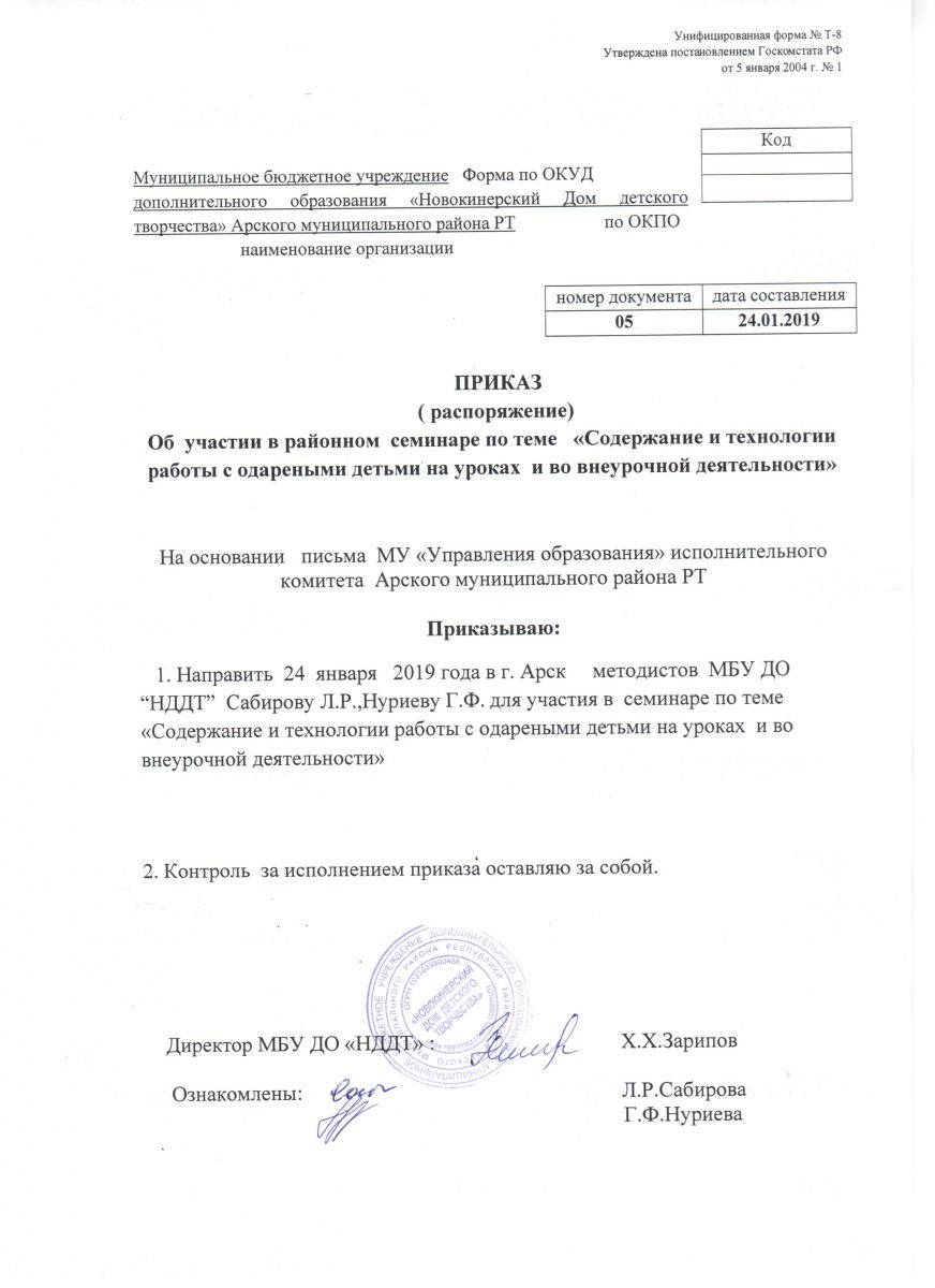 Приказ об участии в районном семинаре