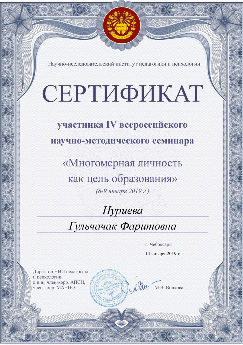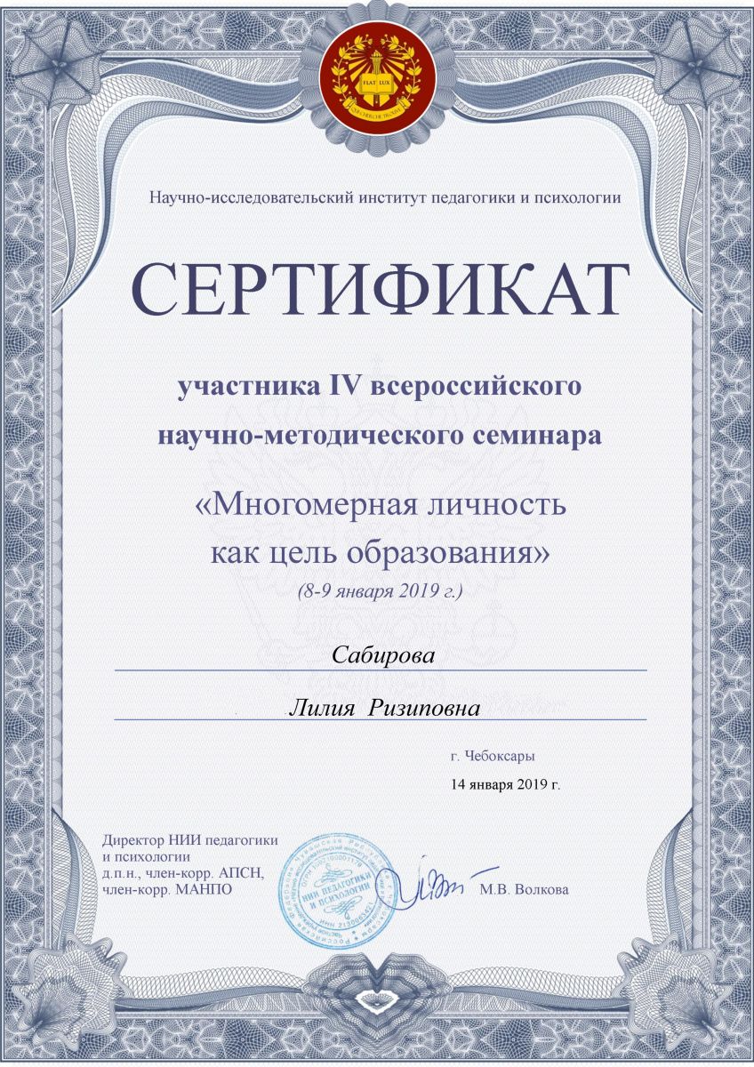 Свидетельство об участии в семинаре