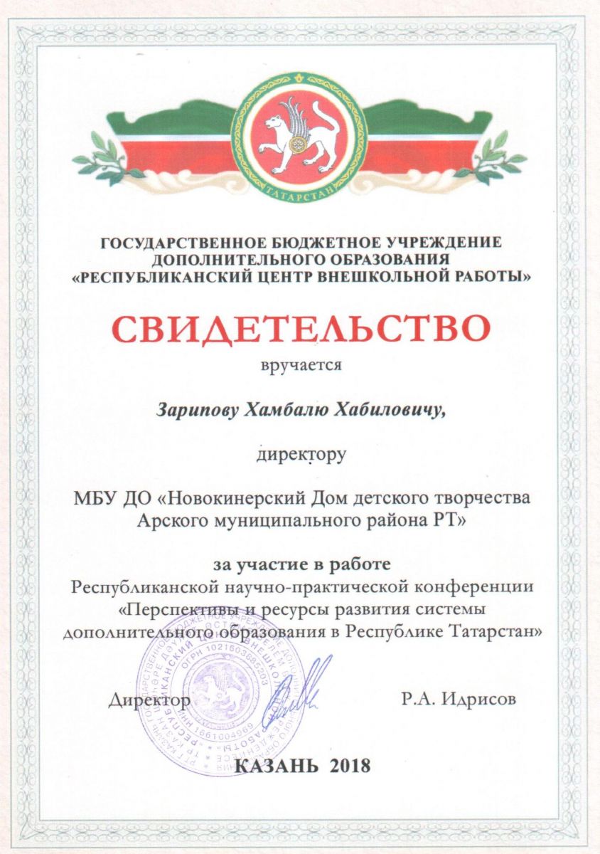 Муниципальное бюджетное учреждение дополнительного образования «Новокинерский Дом детского творчества" Арского муниципального района Республики Татарстан/Татарстан Республикасы Арча районы "Яна Кенәр балалар иҗаты Йорты" өстәмә белем муниципаль бюджет учреждениесе