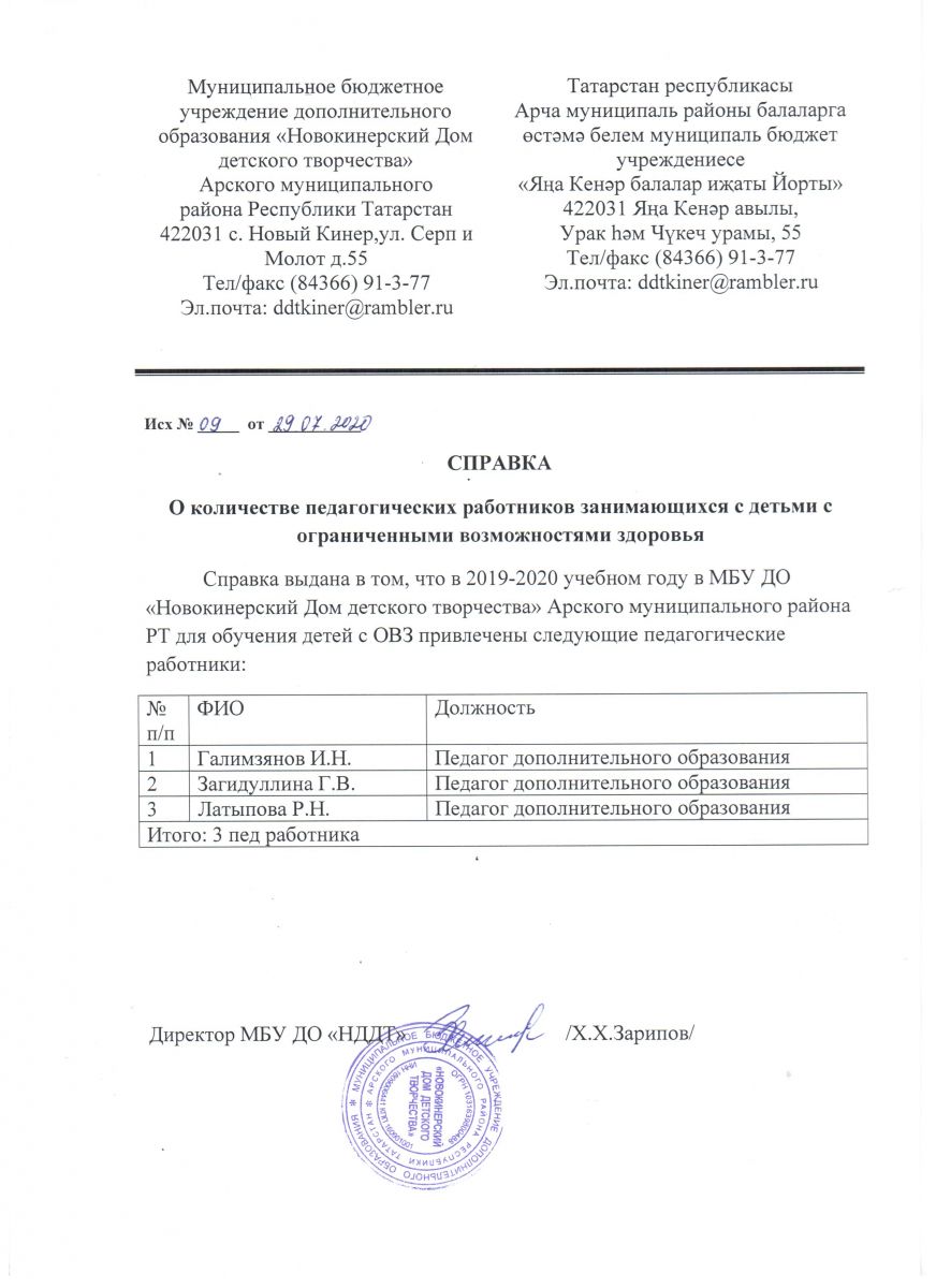 Справка о количестве педагогических работников занимающихся с детьми с ОВЗ