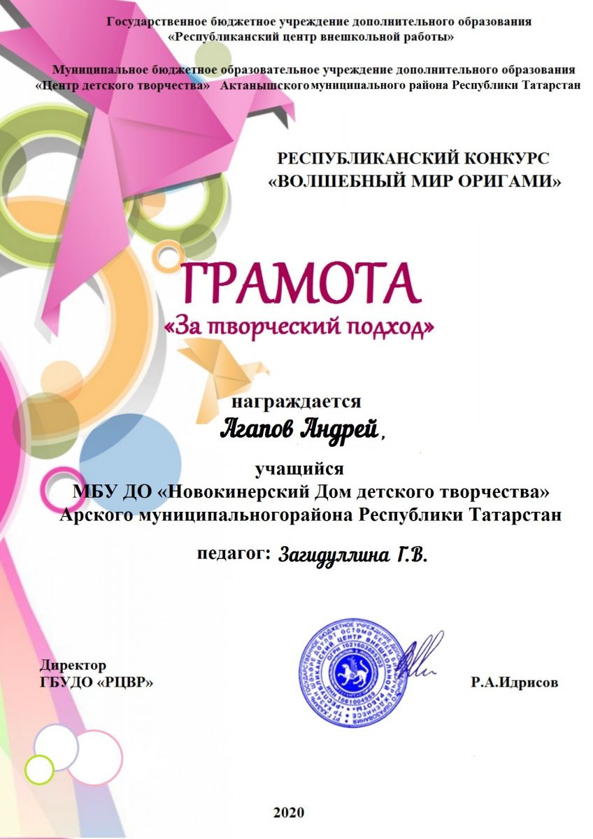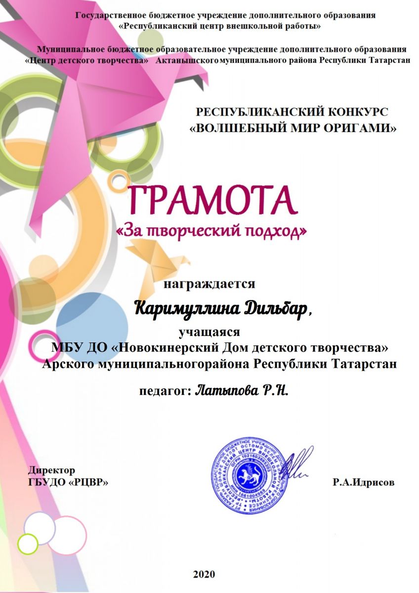 Грамота "За творческий подход" - "Волшебный мир оригами"