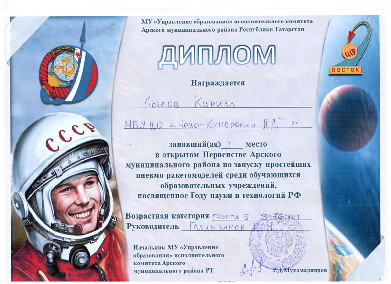 1 место - Соревнования по простейшим пневморакетомоделям (команда)