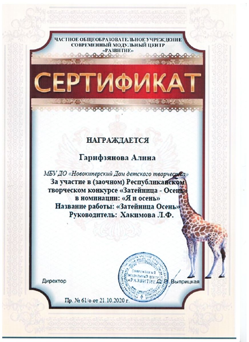 | Руководитель: | Камалиева Гульчачак Мансуровна |