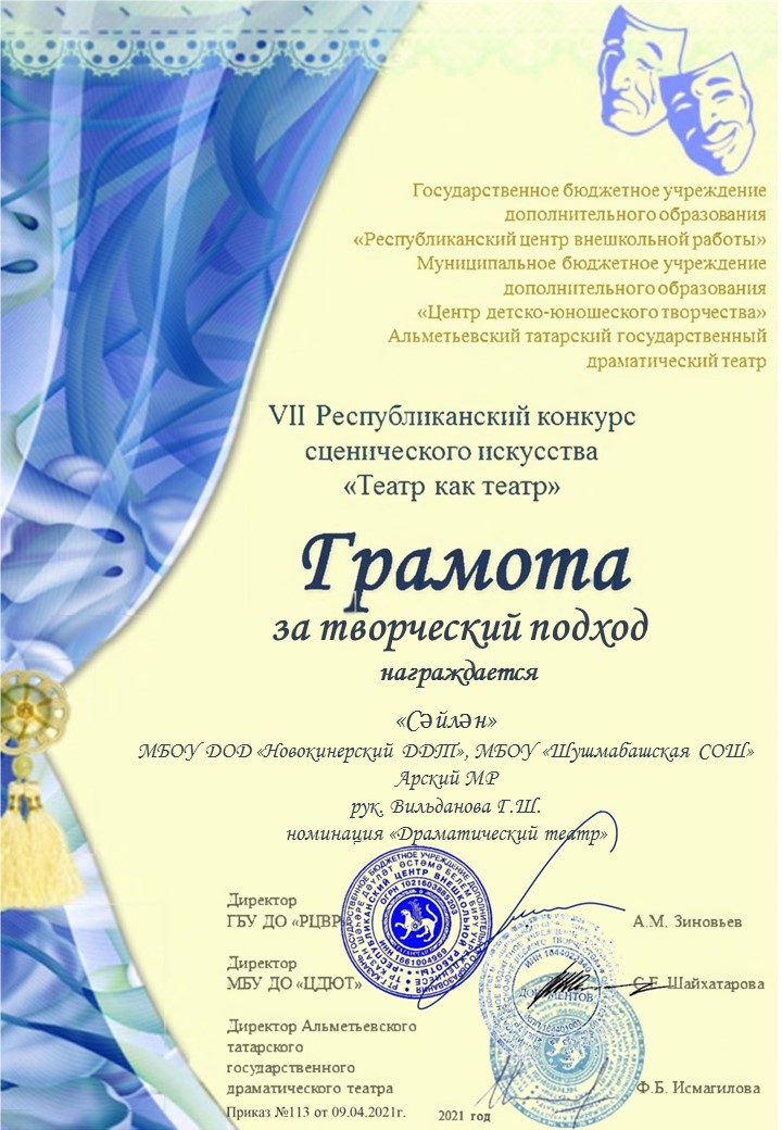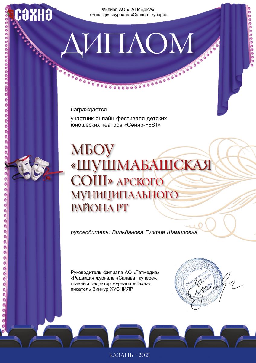 Диплом "Театр яктылыкка, нурга илтә" (участие)