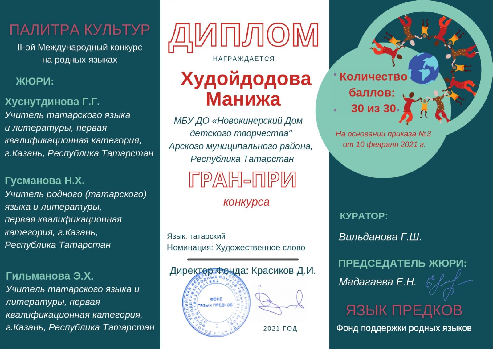 Гран-при II-ой Международный конкурс на родных языках "Язык предков"