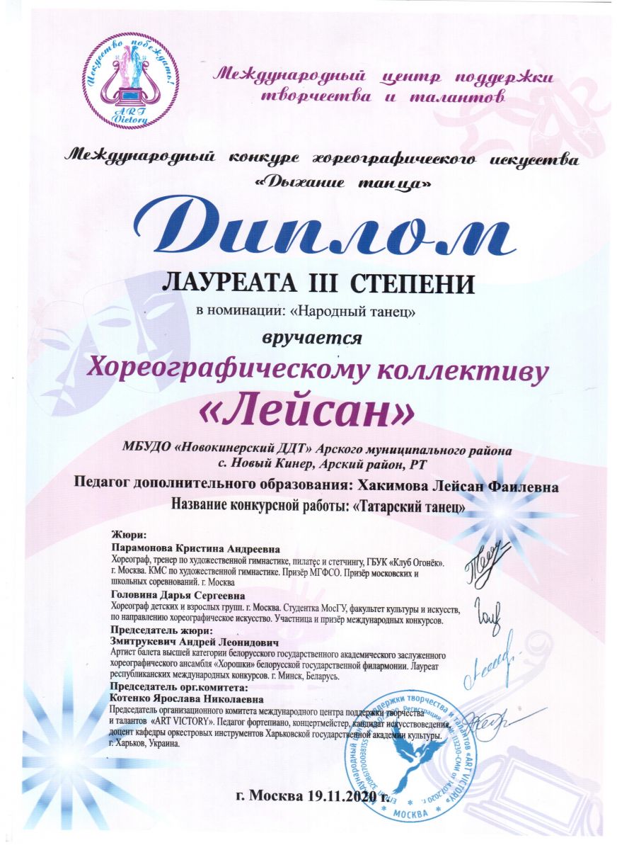 Диплом лауреата 3 степени - "Дыхание танца" (коллектив)