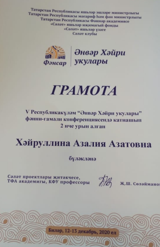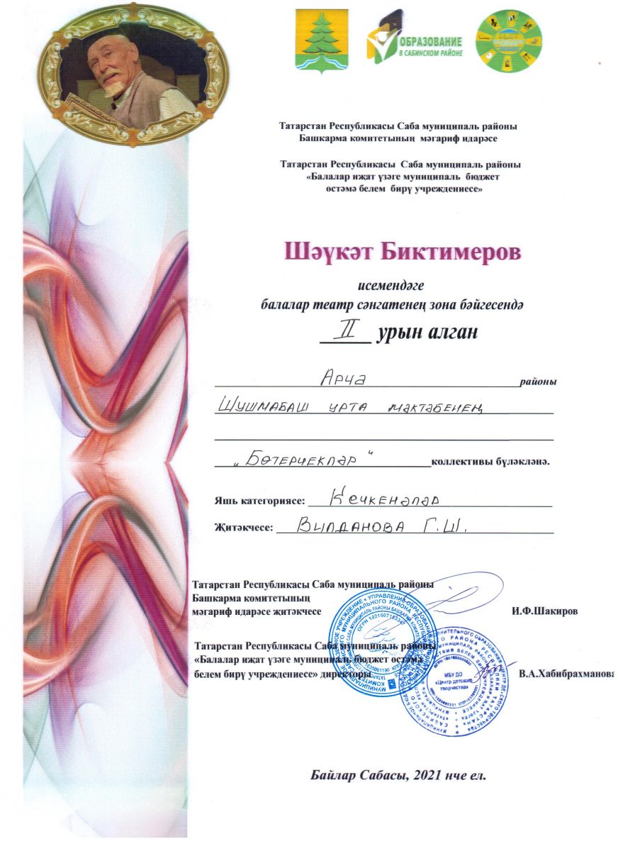 2 место - "Шәүкәт Биктимеров исемендәге конкурс"