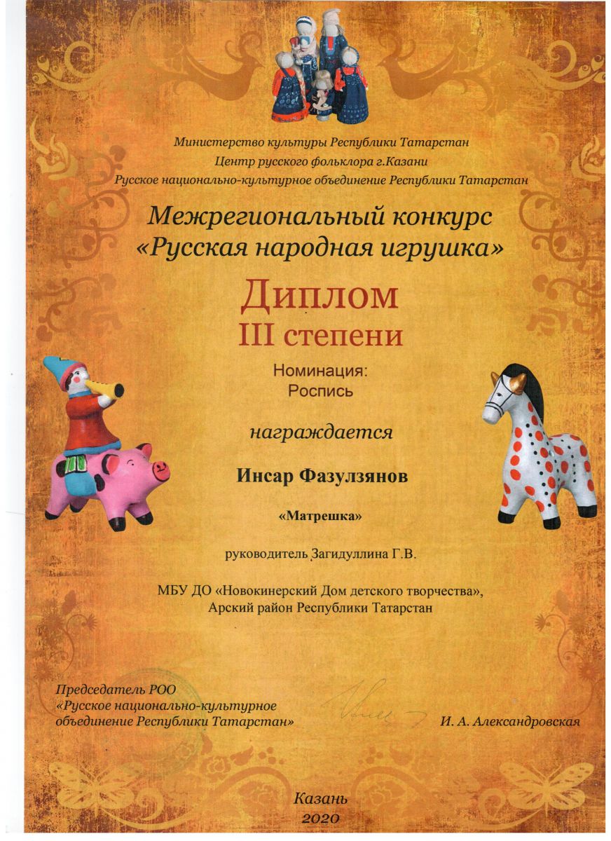 Диплом III степени - "Халык зур ул, моңлы ул..."