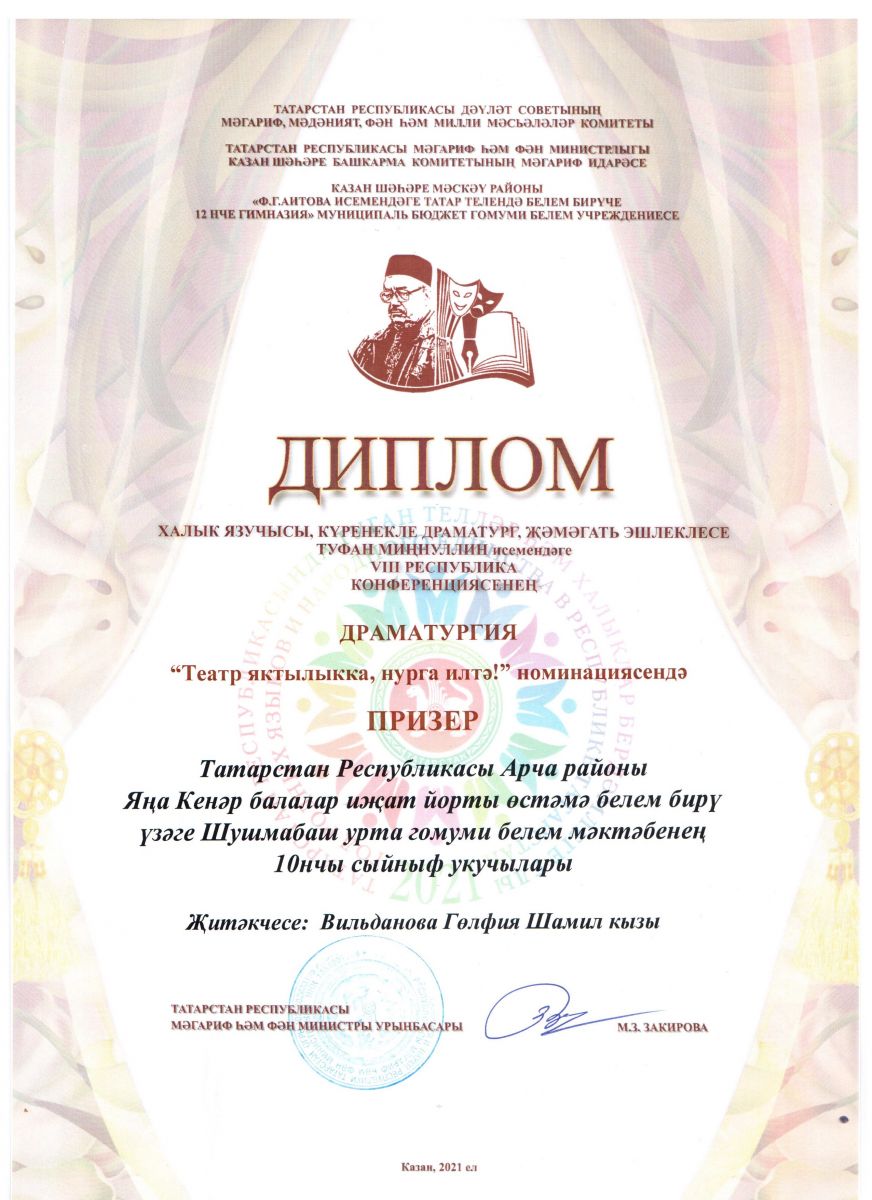 Диплом - "Театр яктылыкка, нурга илтә!"