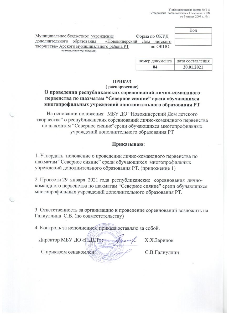 Приказ о проведении республиканских соревнований "Северное сияние"