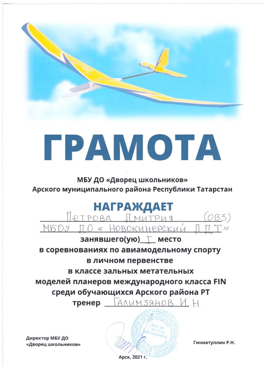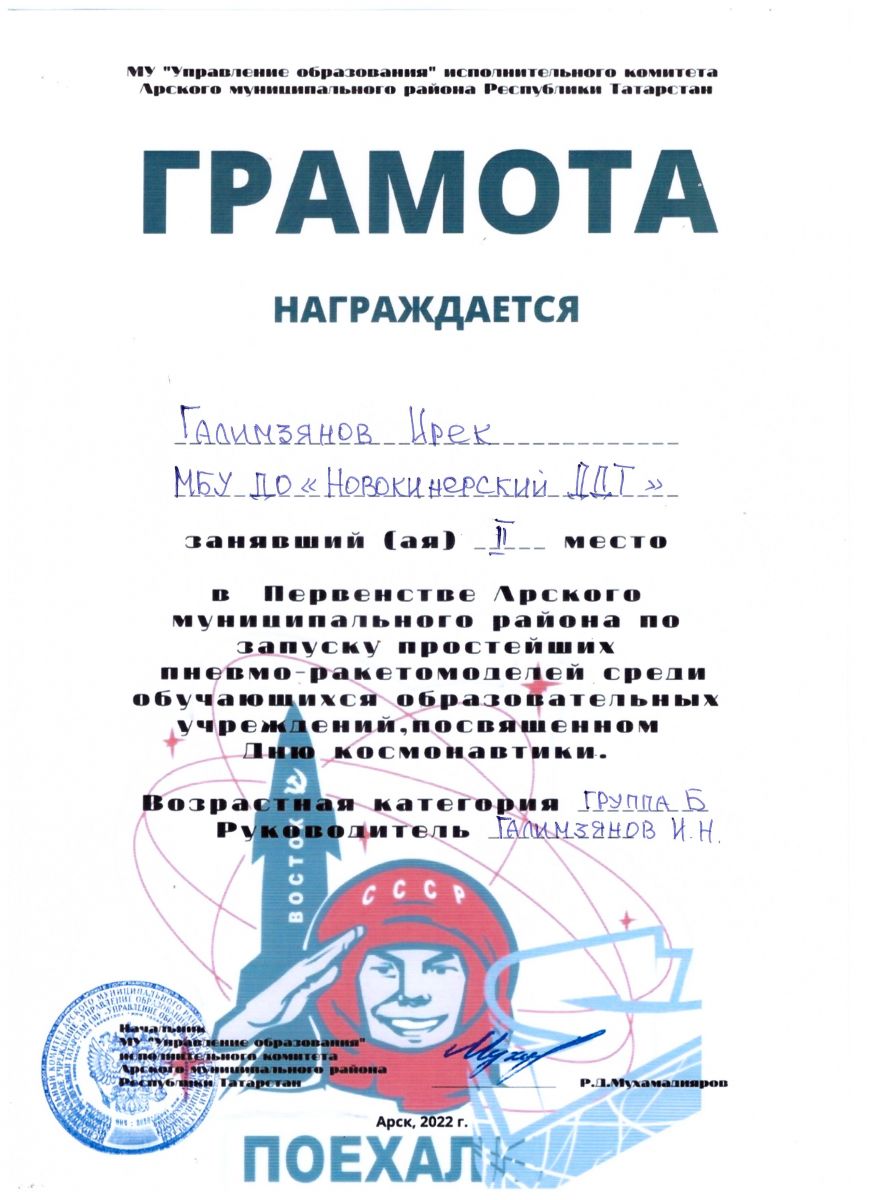 1 место в Первенстве по запуску простейших пневмо-ракетомоделей