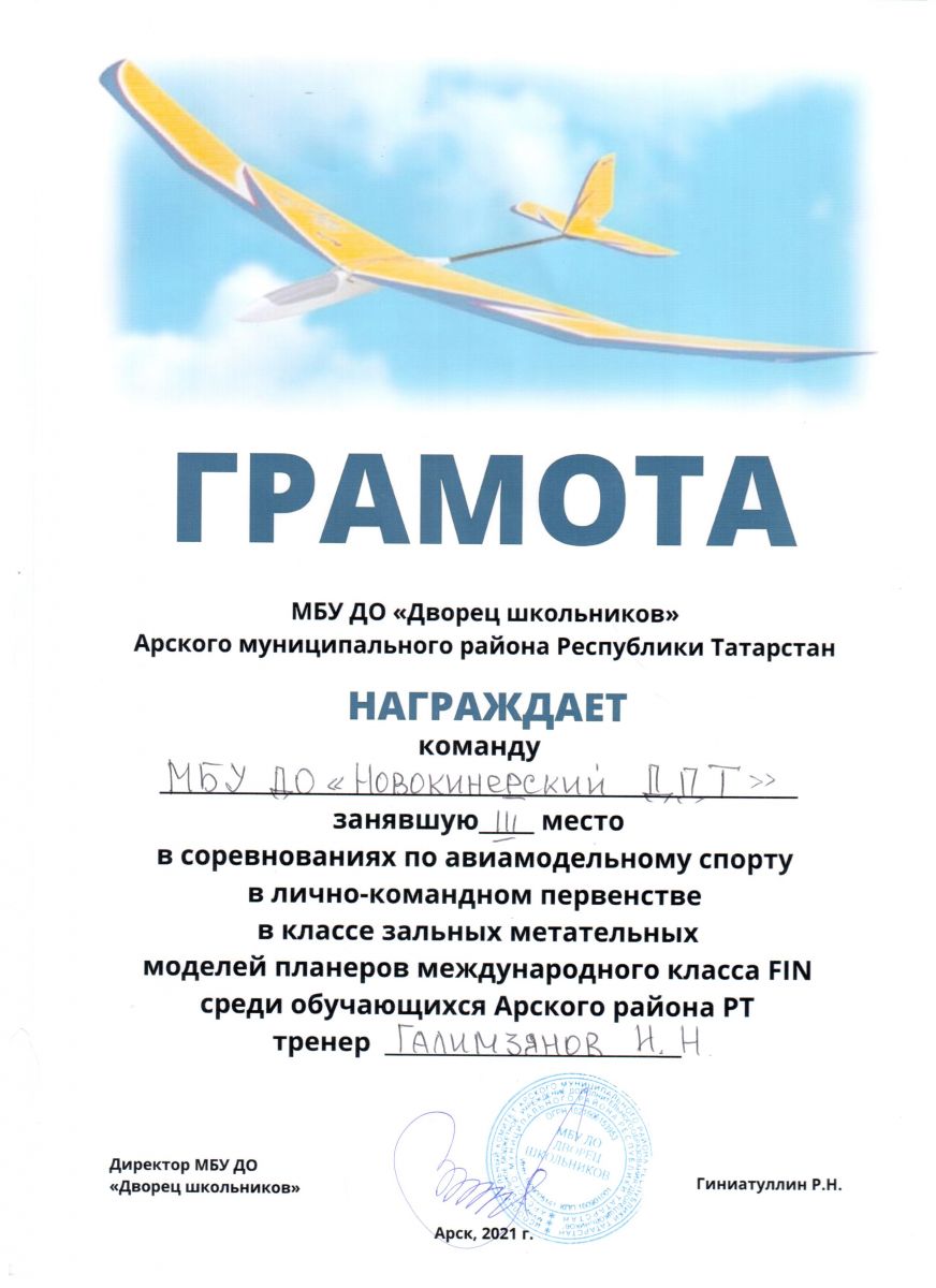 3 место в Первенстве по запуску простейших пневмо-ракетомоделей (команда)