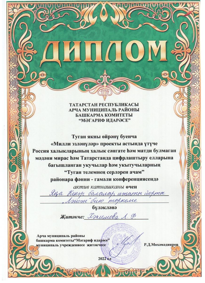 Диплом участника - "Туган телемнең серләрен ачам" (коллектив)