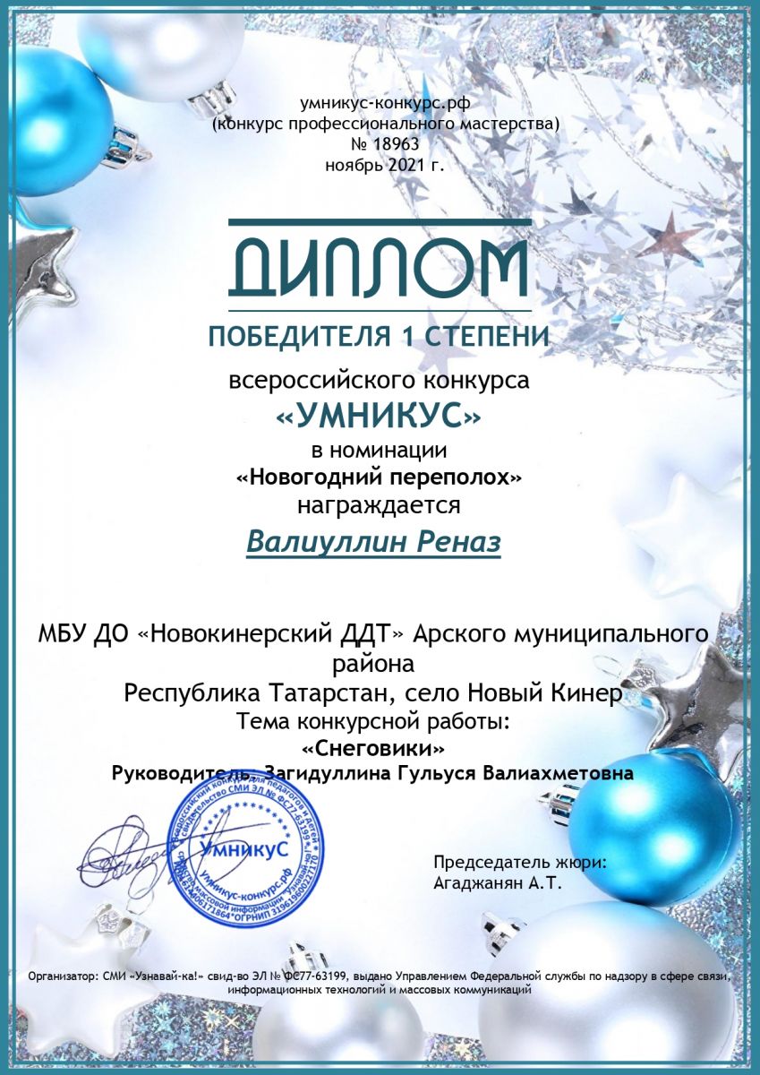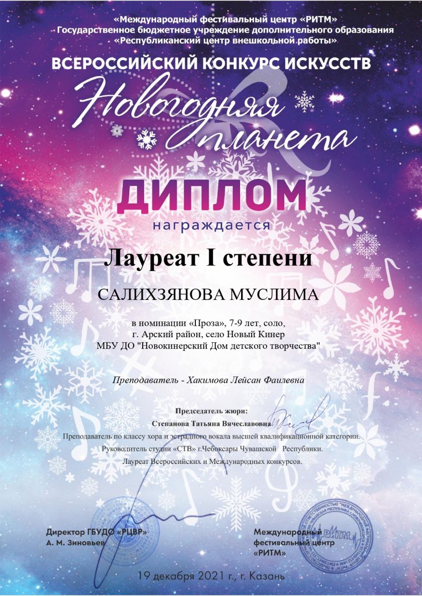 Диплом лауреата 1 степени - "Новогодняя планета"